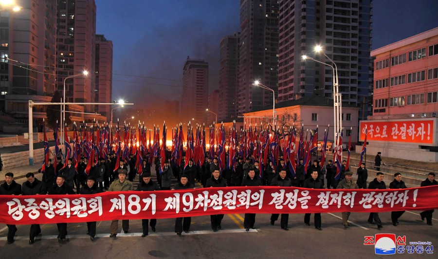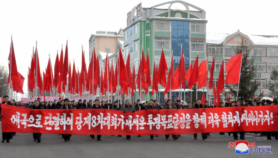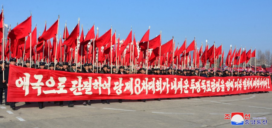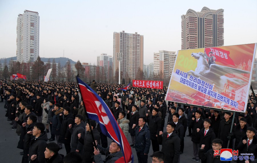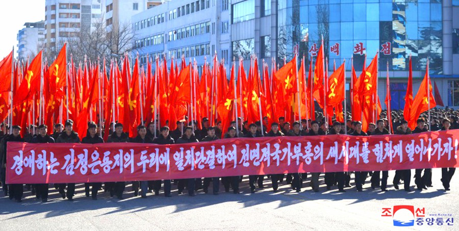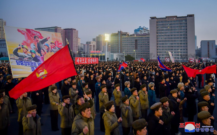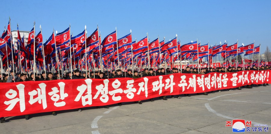 Pchjongjang 11. ledna čučche 113 (2024) (KCNA) – 10. ledna se na náměstí před Domem kultury 25. dubna uskutečnilo shromáždění odhodlání předvoje mládeže k důslednému plnění závěrů 9. pléna 8. Ústředního výboru strany.
