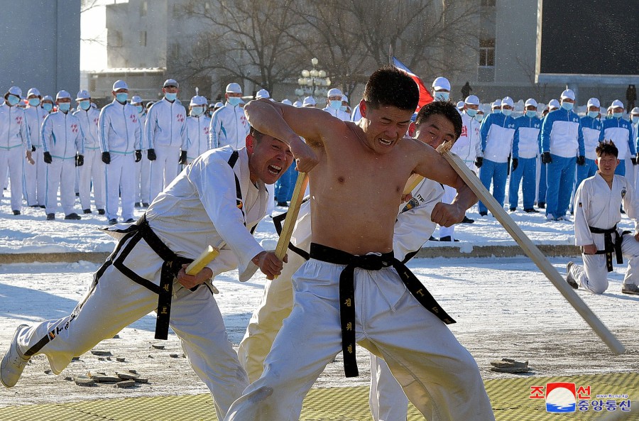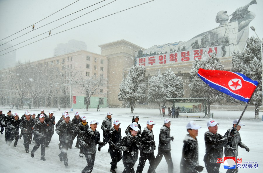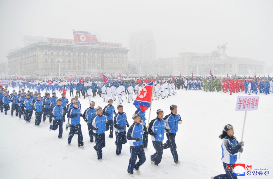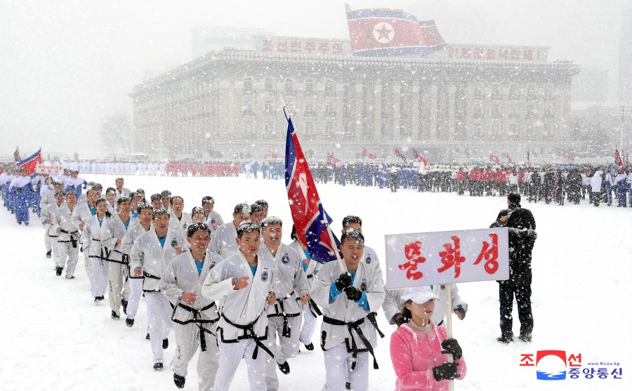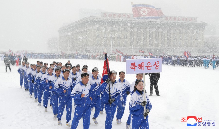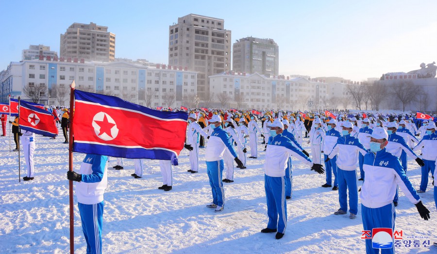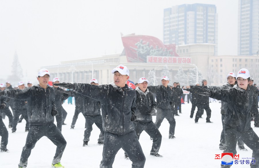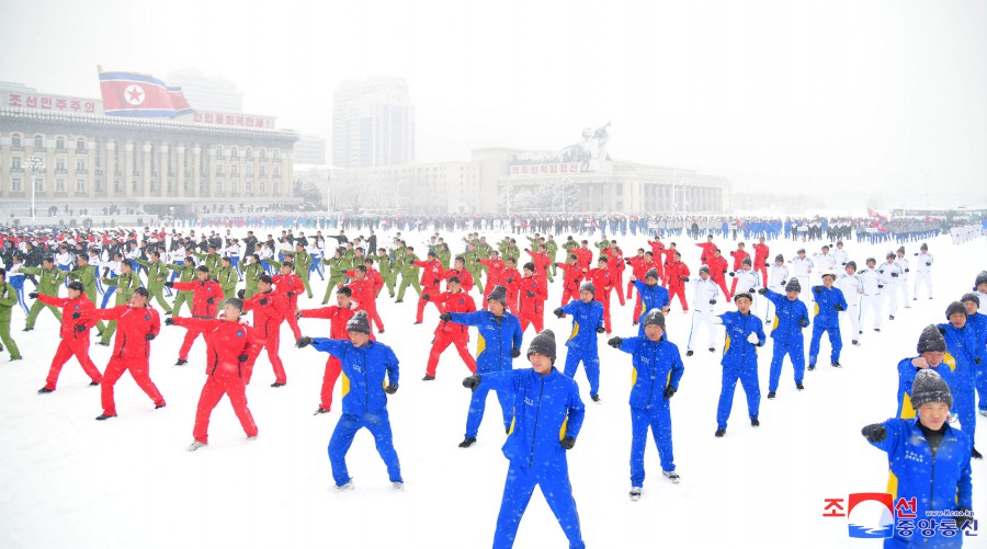 Pchjongjang 15. ledna čučche 113 (2024) (KCNA) – U příležitosti prvního Dne sportu v novém roce prováděli obyvatelé různých míst rozličné masové tělocvičné aktivity.