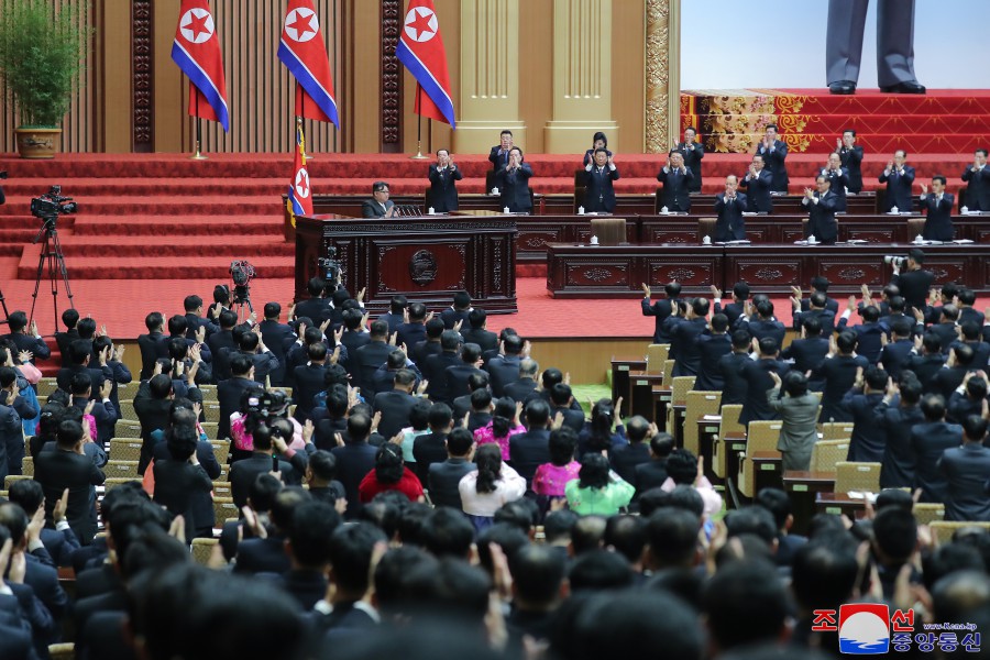 Vážený soudruh Kim Čong Un přednesl hlavní politický projev „Bezprostřední úkoly pro rozkvět a rozvoj republiky a zlepšení blahobytu lidu“.