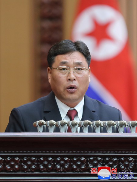 Předseda NLS soudruh Pak In Čchol přednesl úvodní projev.