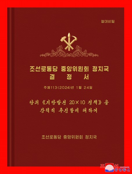 Vážený soudruh Kim Čong Un přednesl hlavní projev „O rázném provádění stranické politiky 20 × 10 pro rozvoj periferií“. (Význam tohoto názvu zpráva neobjasňuje, pozn. překl.)