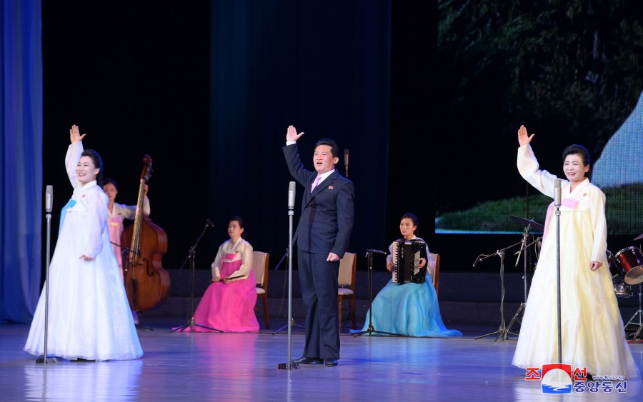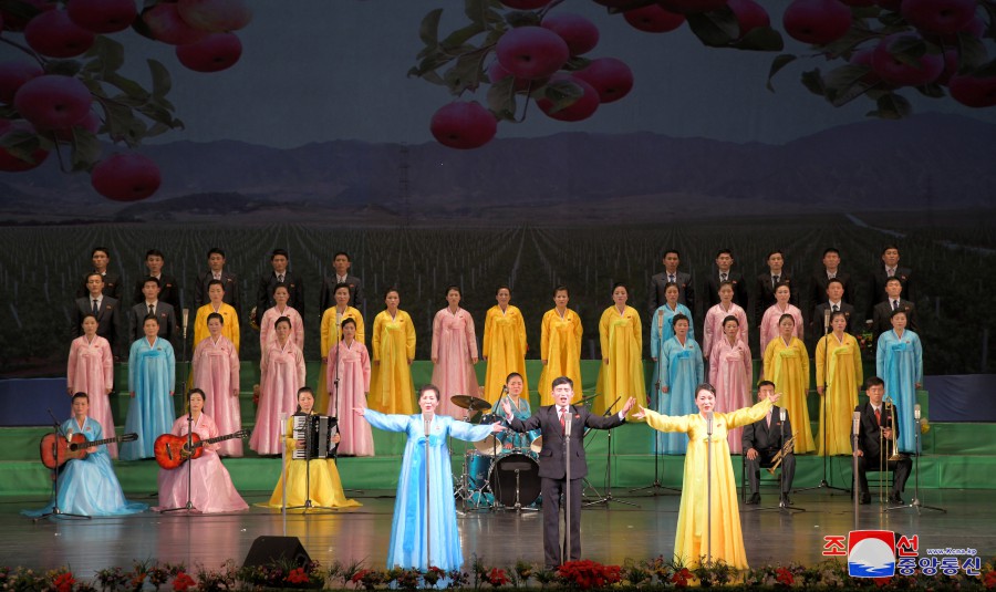 Účinkující v radostných melodiích odráželi plamenný pocit důvěry v Ústřední výbor veliké strany a demonstrovali celému světu důstojnost a velikost naší republiky.