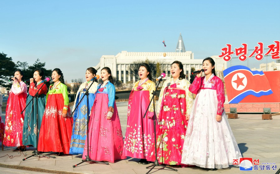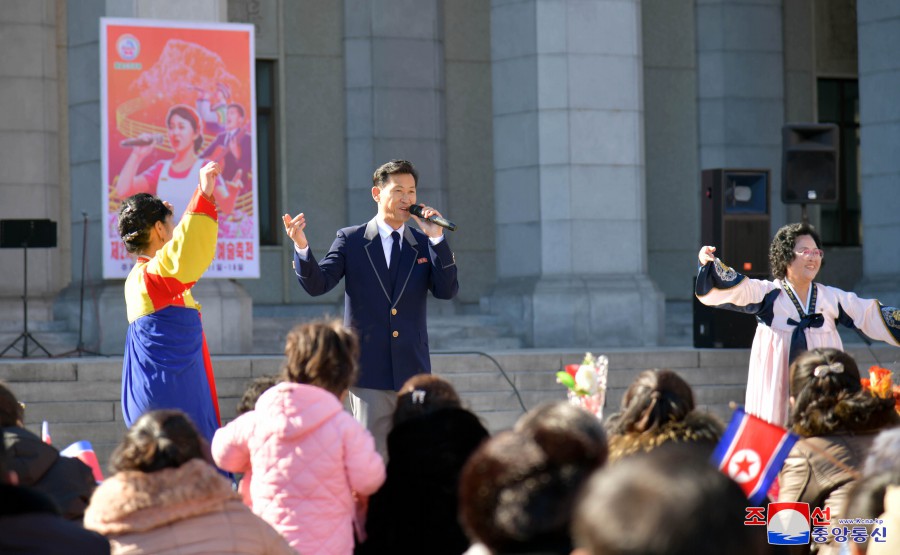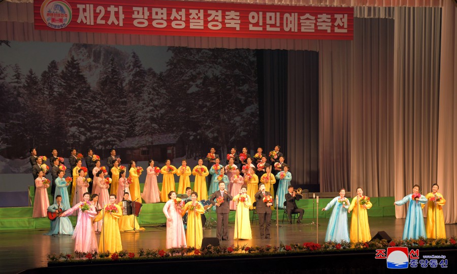 16. února se konala představení účastníků 2. Festivalu lidového umění ve Pchjongjangském velkém divadle, Uměleckém divadle Ponghwa, Velkém divadle východního Pchjongjangu a dalších.