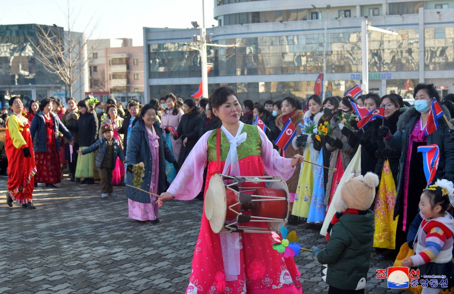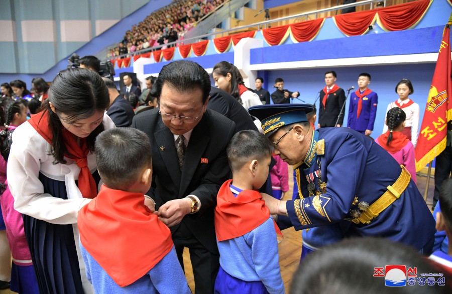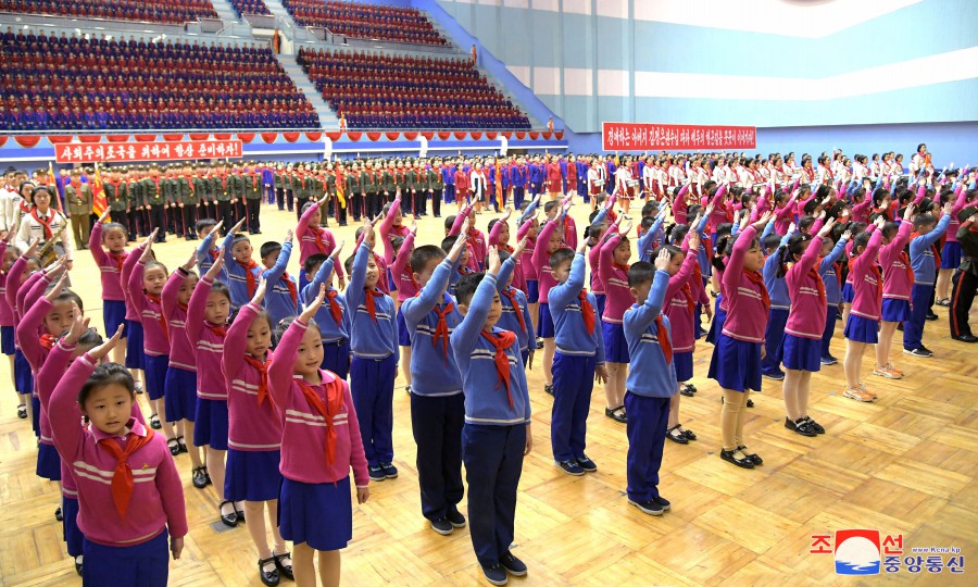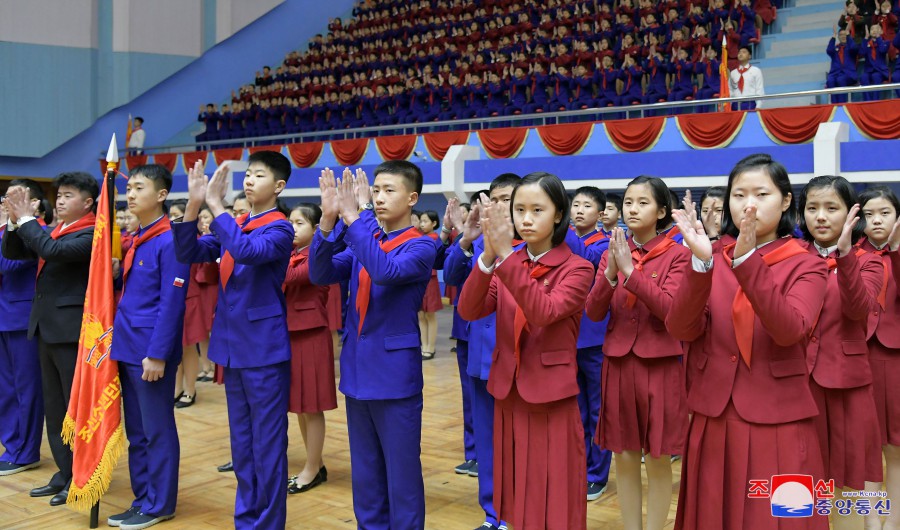U příležitosti 82. výročí narození velkého vůdce generalissima Kim Čong Ila se 16. února v Pchjongjangu konalo celostátní shromáždění organizací Korejského svazu dětí.