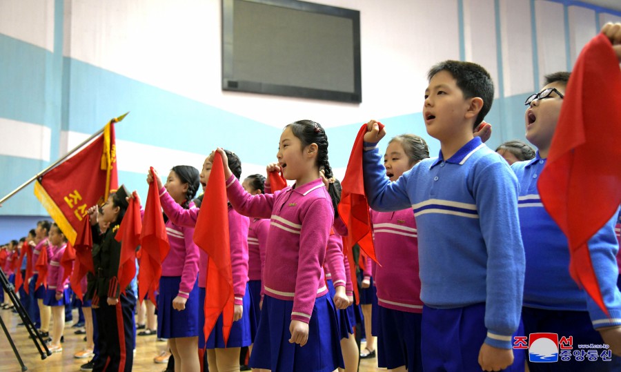Na shromáždění proběhl obřad vstupu do Korejského svazu dětí.