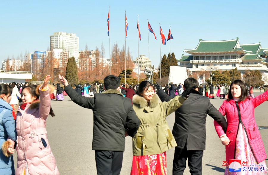 U příležitosti 82. výročí narození velkého vůdce soudruha Kim Čong Ila se 16. února na Kim Ir Senově náměstí konala slavnost mládeže a studentstva.