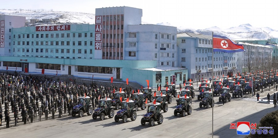 Slavnostního předání traktorů se 4. března v Hjesanu zúčastnili vedoucí funkcionáři provincie, mezi nimi vedoucí tajemník provinčního výboru strany soudruh Ri Tche Il, předseda lidového výboru provincie Rjanggang soudruh Kim Čchol Nam a předseda provinčního zemědělského výboru soudruh Kim Jong Nam, a pracující lid provincie.