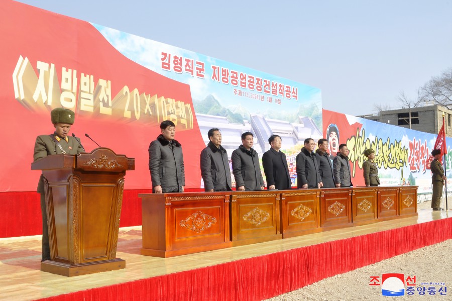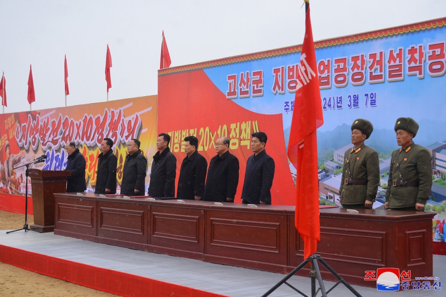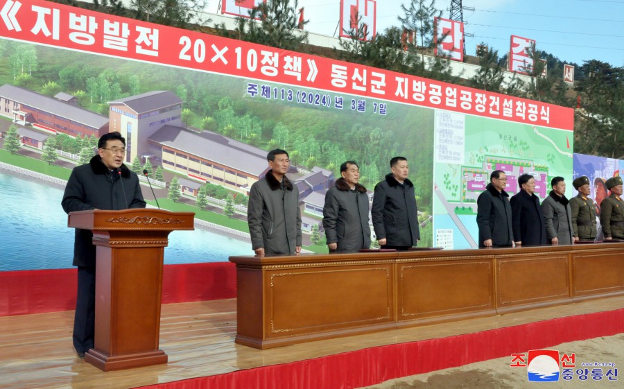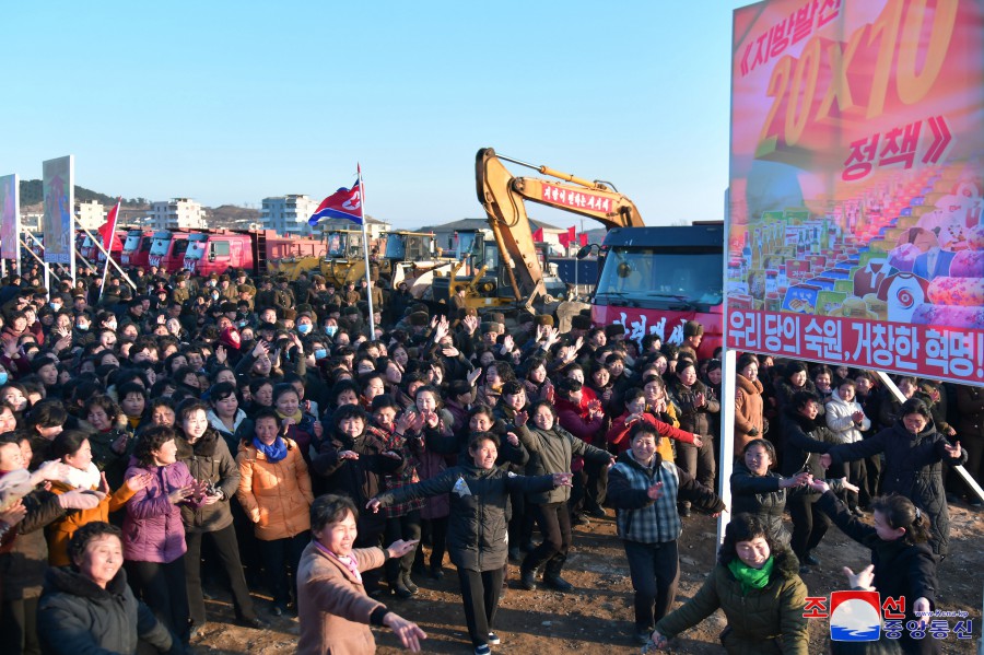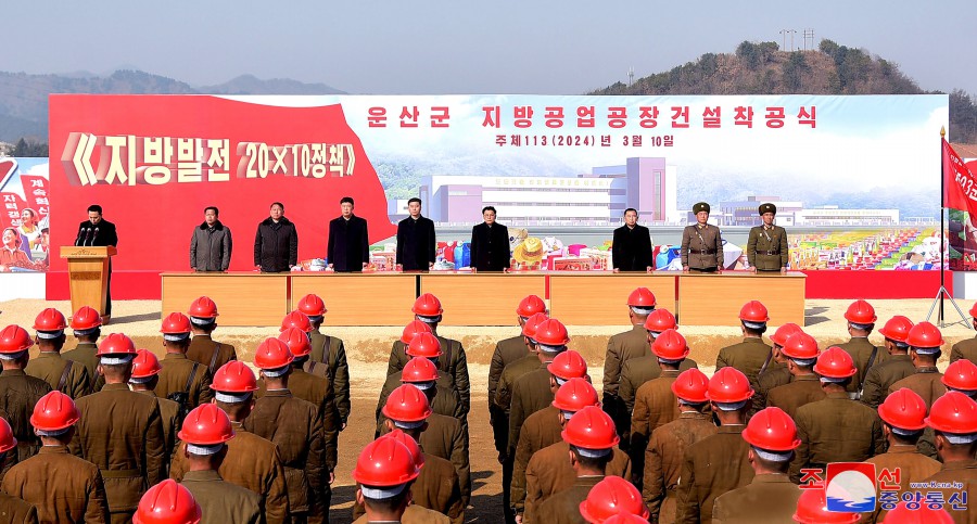 Pchjongjang 11. března čučche 113 (2024) (KCNA) – V okresech Kudžang, Unsan, Jontchan, Unčchon, Čerjong, Tongsin, Usi, Kosan, Ičchon, Hamdžu, Kumja, Kim Hjong Džik a Čangpchung byla postupně slavnostně zahájena výstavba podniků místního průmyslu v rámci „politiky rozvoje regionů 20 × 10“.
