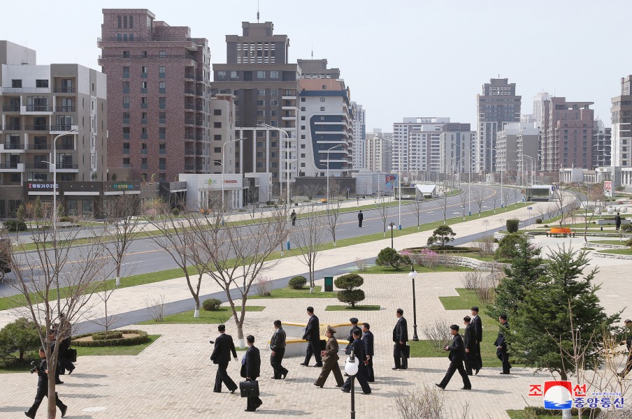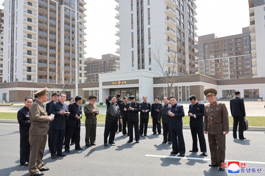 Pchjongjang 6. dubna čučche 113 (2024 (KCNA) – Generální tajemník Korejské strany práce a předseda pro státní záležitosti Korejské lidově demokratické republiky vážený soudruh Kim Čong Un 5. dubna na místě zkontroloval 2. etapu výstavby obytných domů s 10 tisíci byty v oblasti Hwasong před dokončením stavebních prací.