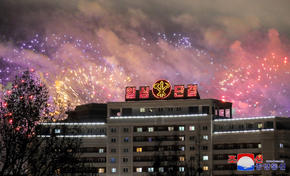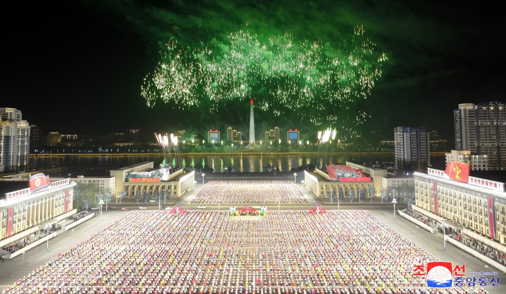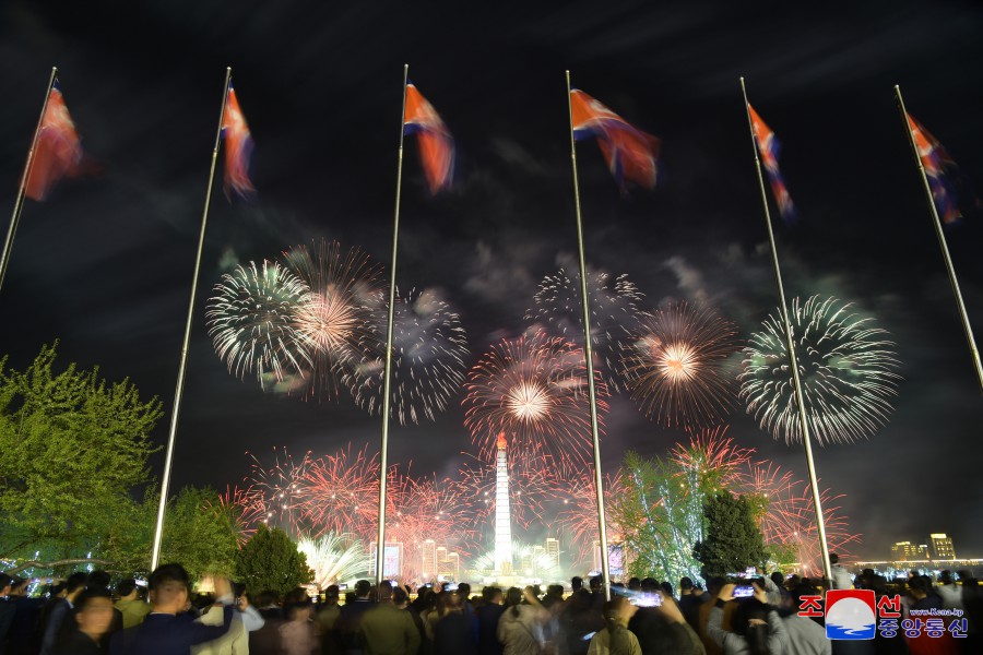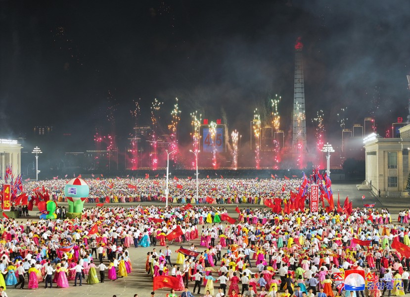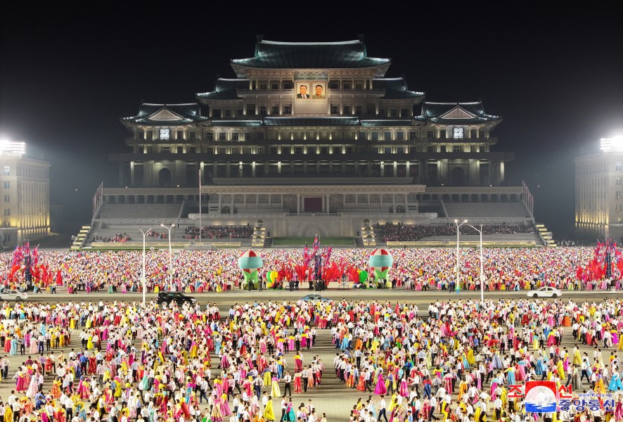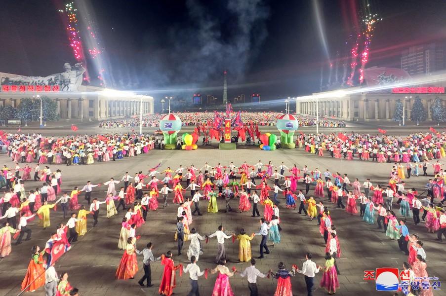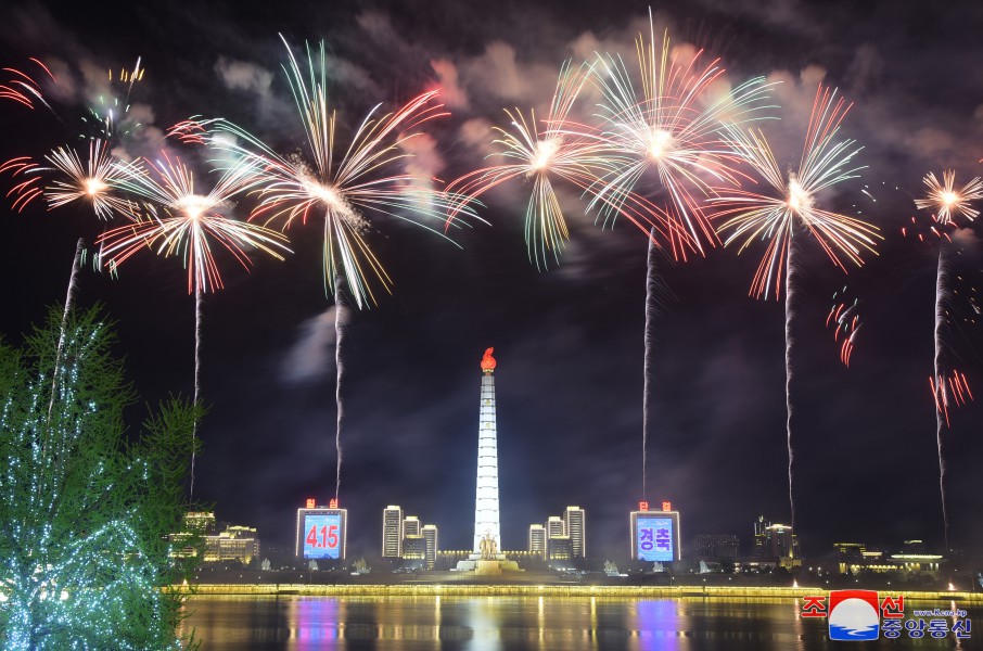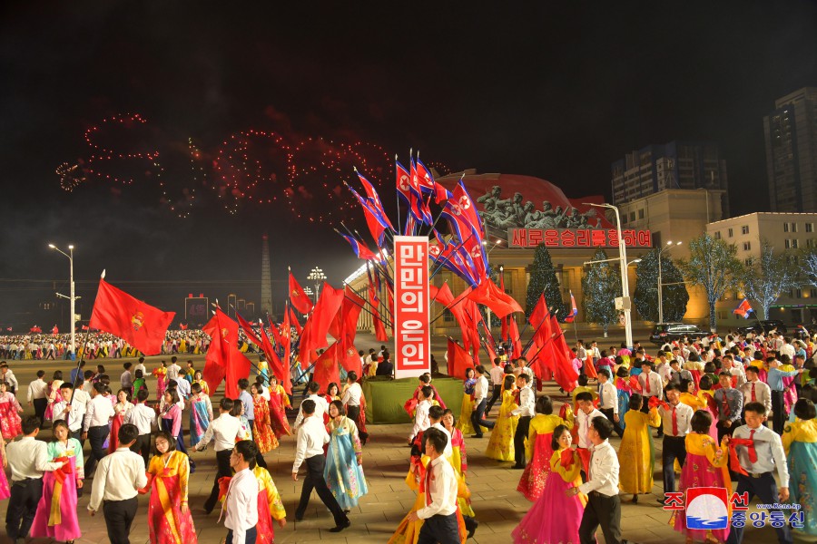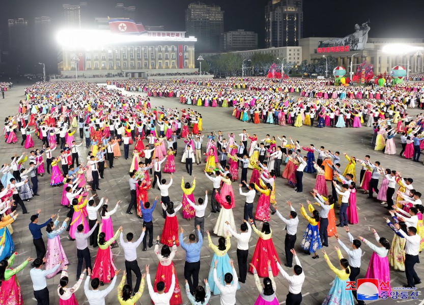 14. dubna večer se konala večerní taneční slavnost mládeže a studentstva na Kim Ir Senově náměstí v Pchjongjangu.