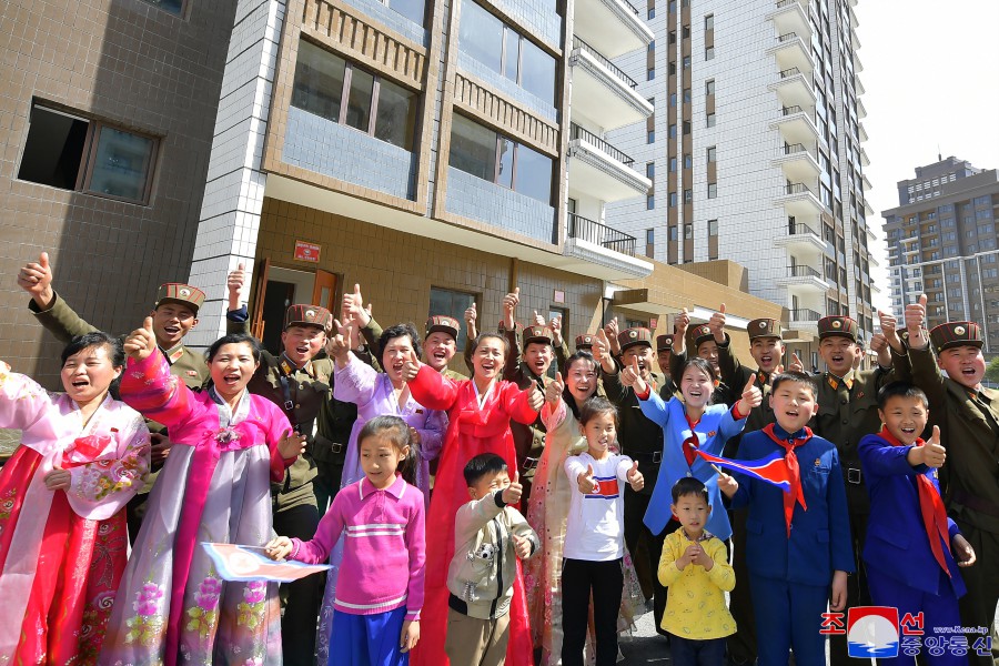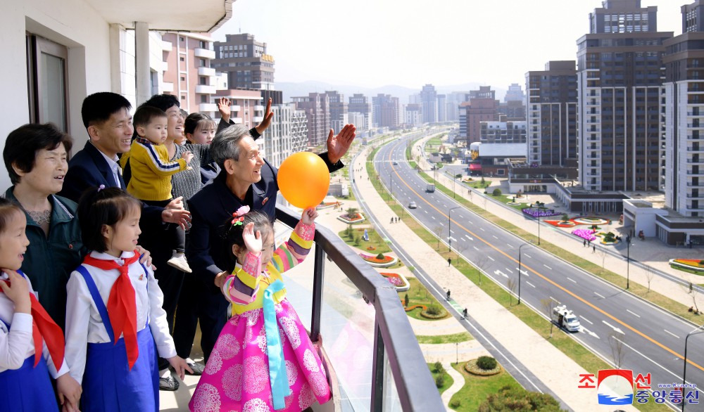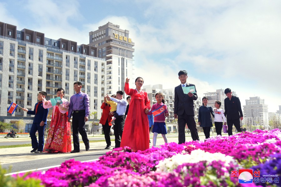 Pchjongjang 20. dubna čučche 113 (2024) (KCNA) – Obyvatelé nových obytných domů oživili vzkvétající socialistickou ulici, kde každá budova komplexně odráží svět ušlechtilé lásky Ústředního výboru veliké strany, která pro lid ničeho nešetří, a budoucnost mocné Koreje, která má svého vůdce v osobě rodného otce lidu.