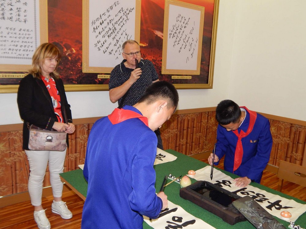 Prvý deň programu sme dopoludnia navštívili múzeum kórejského umenia, kde boli krásne maľby v štýle socialistického realizmu znázorňujúce rôzne obdobia dejín KĽDR, od jej vzniku až po súčasnosť. Popoludní sme boli v Paláci školákov Mangjongde, kde sme videli, ako sa deti venujú rôznym záujmovým činnostiam, napríklad hre na hudobné nástroje, spevu, tancu, vyšívaniu, maľovaniu alebo športom. Pozreli sme si aj ich koncert, ktorý v nás zanechal hlboký dojem a musíme konštatovať, že vzdelanie a rozvoj detí a mládeže je pre KĽDR naozaj prioritou, na rozdiel od kapitalistických krajín, kde deťom často chýba zmysluplné využitie času. Vďaka podpore štátu a vedeniu učiteľov môžu kórejské deti naplno rozvíjať svoj talent a poctivým tréningom sa neustále zdokonaľovať.