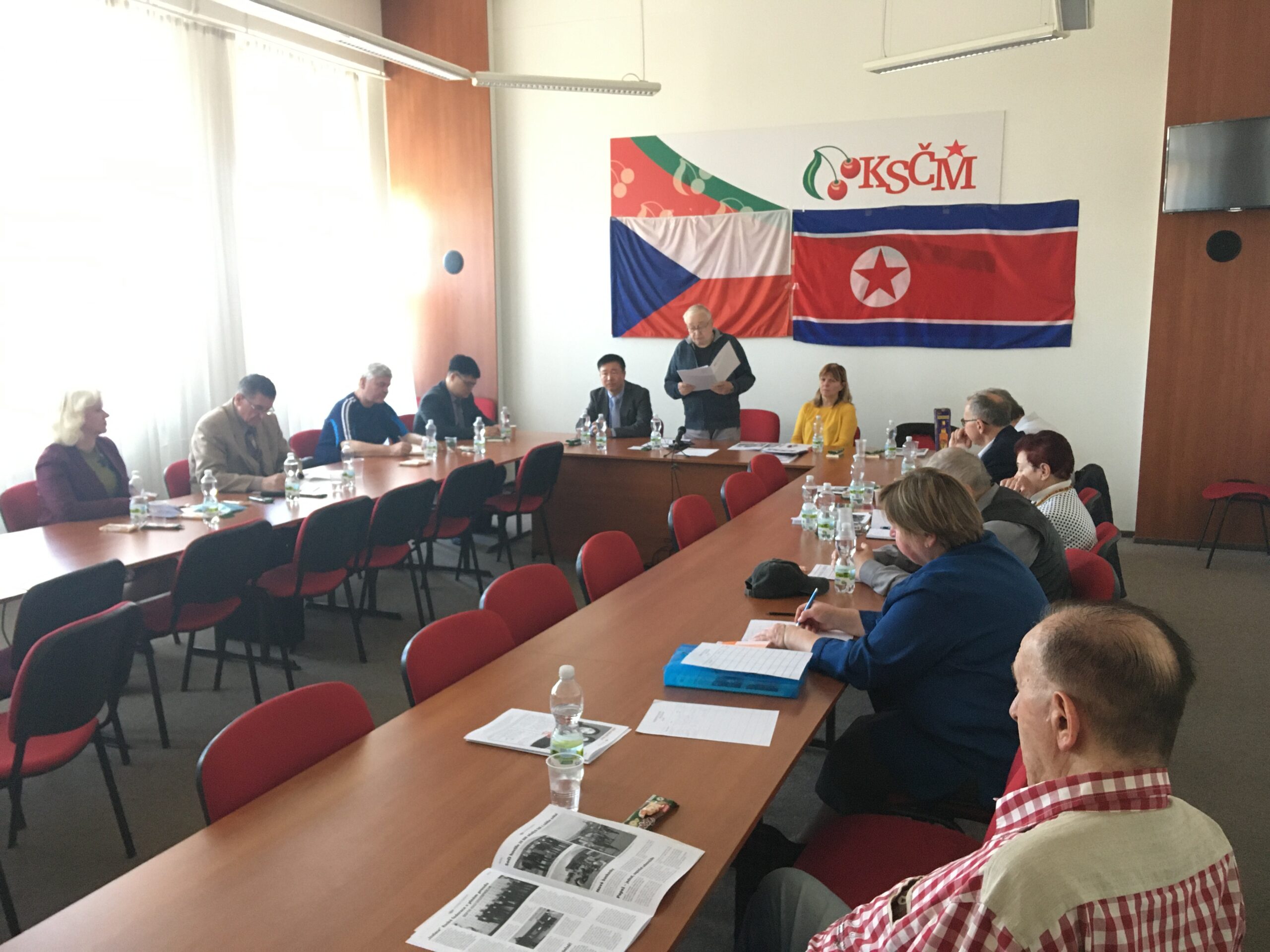S príhovorom vystúpil aj veľvyslanec KĽDR v ČR súdruh Ču Won Čchol. Uviedol, že chcú meniť štýl života a práce ľudí, práca ale prebieha v obtiažných okolnostiach. Všetko v KĽDR slúži ku blahu ľudu, nielen byty, ale aj politické a spoločenské organizácie atď. Nenájdete tam bezdomovca, všetci chodia do školy, majú výchovu. Povedal, že je to možné vďaka jednomyseľnej jednote ľudu a predstaviteľov štátu – majú rovnaký cieľ, čo by v kapitalistických krajinách nebolo možné.