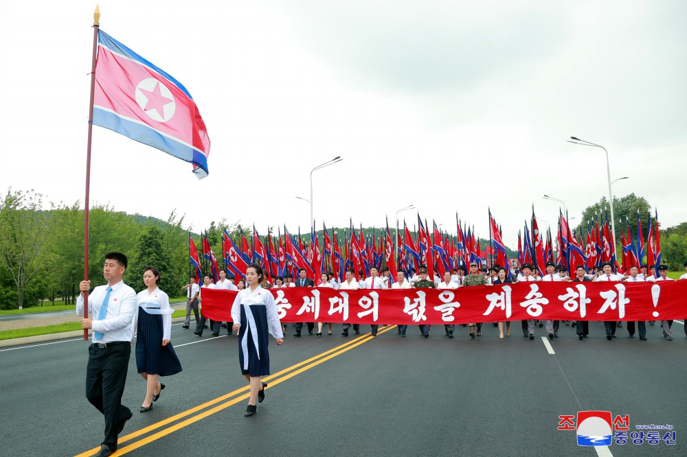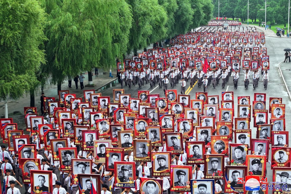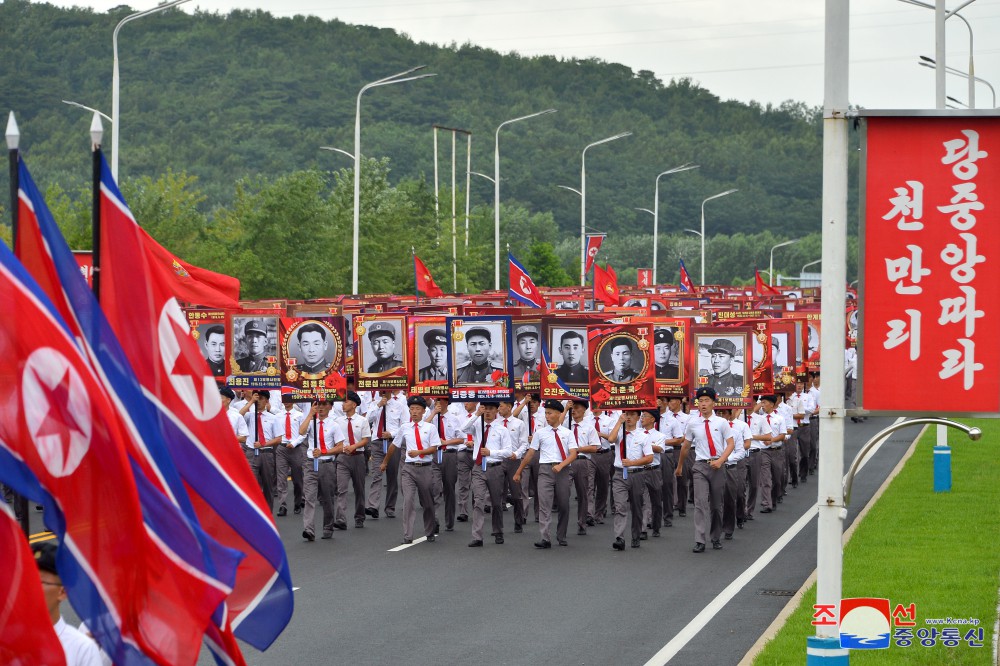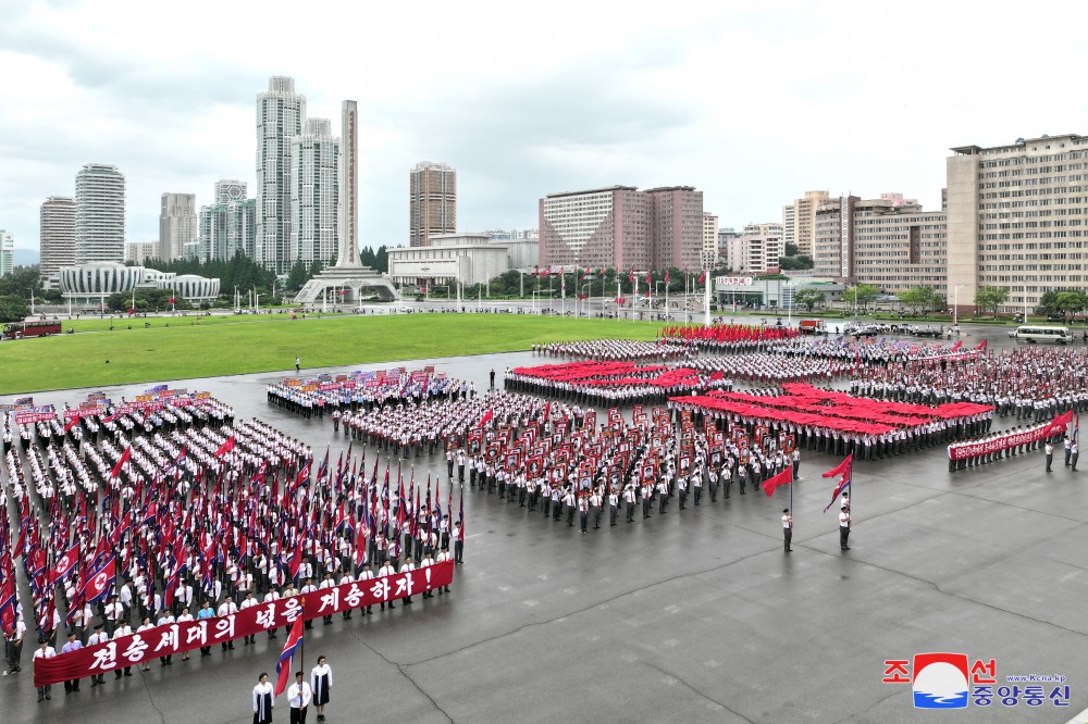 26. července se nadšená vlastenecká mládež, pod vedením Ústředního výboru veliké strany vždy pokračující v dějinách skvělých vítězství čučchejské Koreje a v předvoji otevírající hlavní cestu všestranného rozvoje, všestranného rozkvětu socialismu našeho typu, setkala na Kim Ir Senově náměstí.