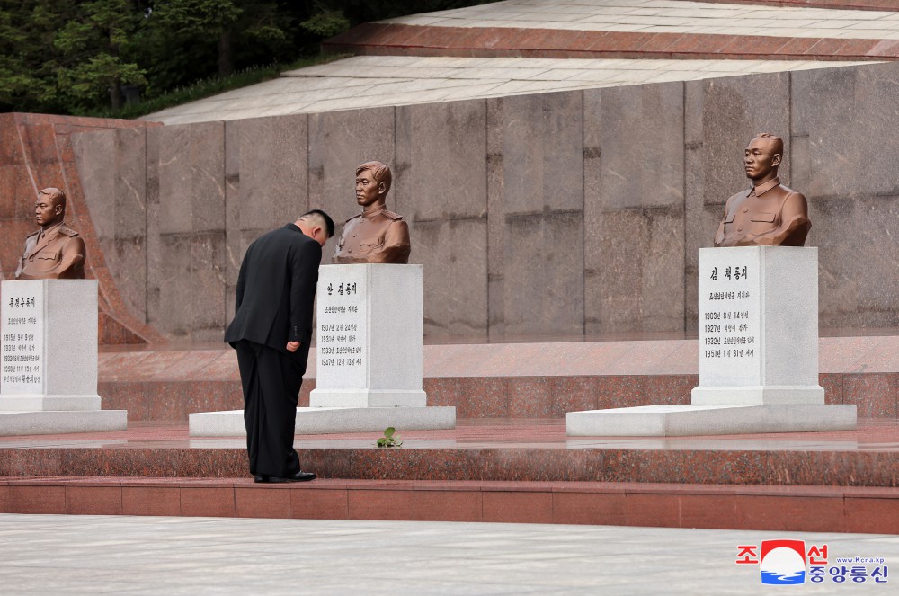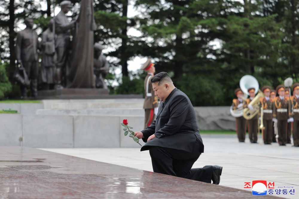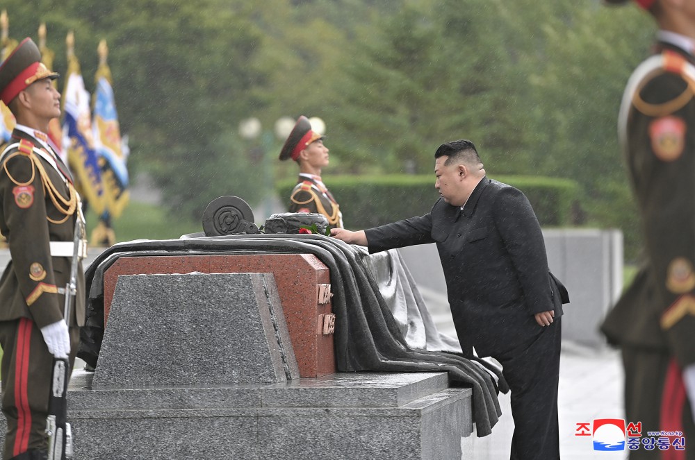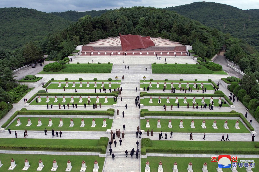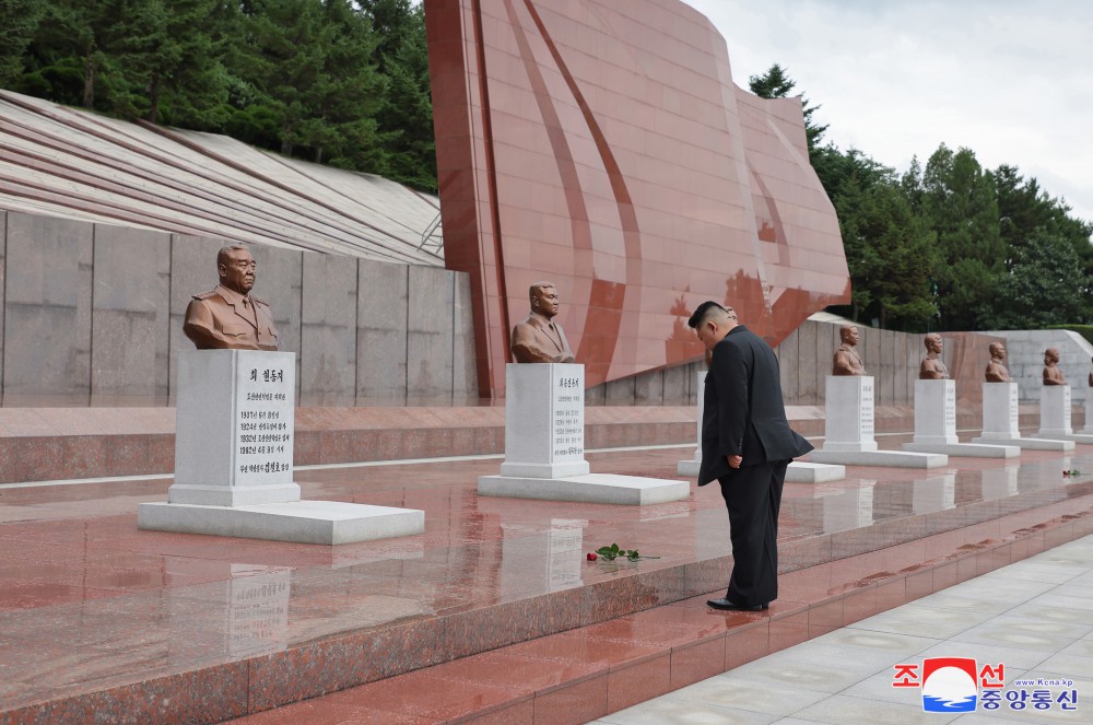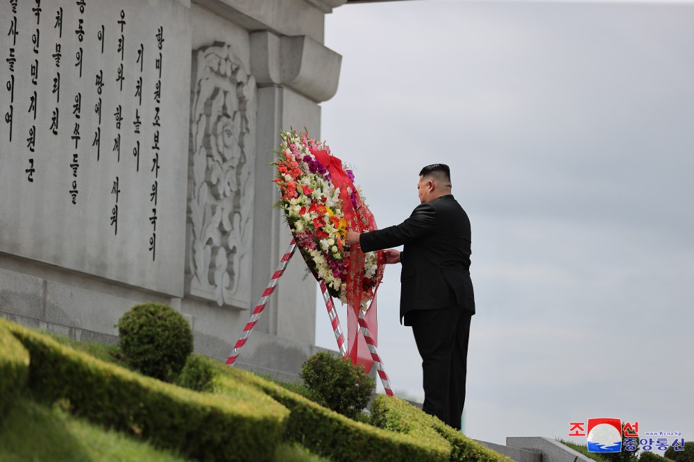 Vážený soudruh Kim Čong Un navštívil u příležitosti Dne vítězství Pohřebiště revolucionářů Tesongsan