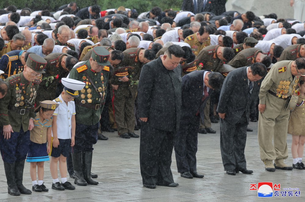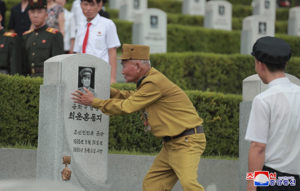 Pchjongjang 27. července čučche 113 (2024) /KCNA/ – U příležitosti 71. výročí vítězství ve Vlastenecké osvobozenecké válce navštívil generální tajemník Korejské strany práce a předseda pro státní záležitosti Korejské lidově demokratické republiky vážený soudruh Kim Čong Un ráno 26. července Hřbitov hrdinů Vlastenecké osvobozenecké války.