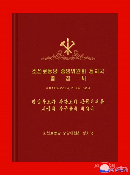 Pchjongjang 31. července čučche 113 (2024) /KCNA/ – Vzhledem k tomu, že v poslední době některé oblasti Severního Pchjonganu, Čagangu a dalších provincií utrpěly vážné škody v důsledku dešťů a povodní, se konalo od 29. do 30. července v postižené oblasti města Sinidžu v provincii Severní Pchjongan mimořádné 22. rozšířené zasedání politbyra 8. Ústředního výboru Korejské strany práce, jehož cílem bylo přijmout opatření pro naléhavou obnovu.