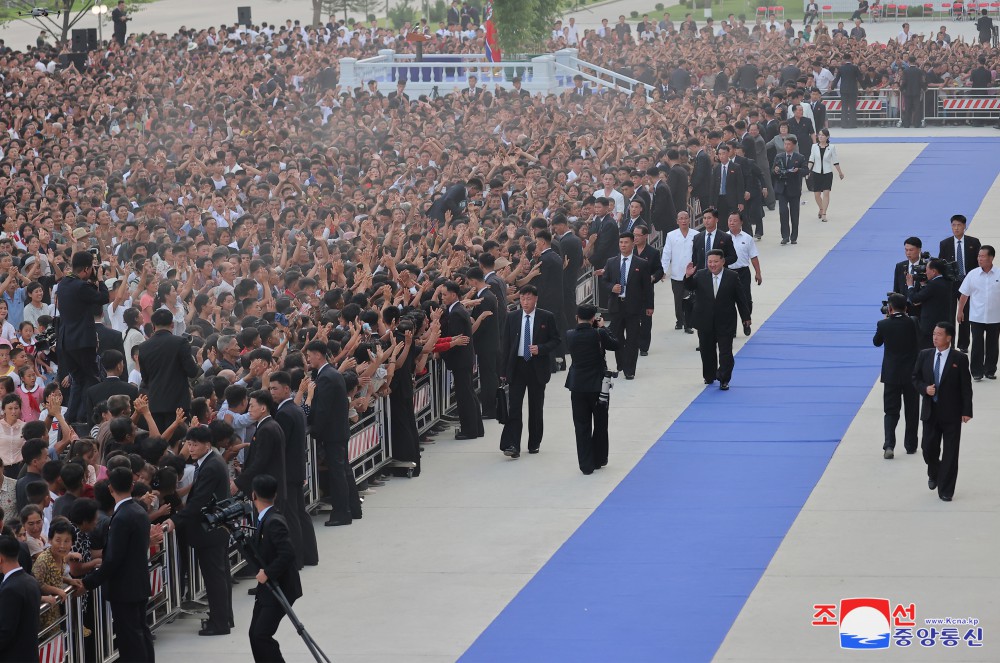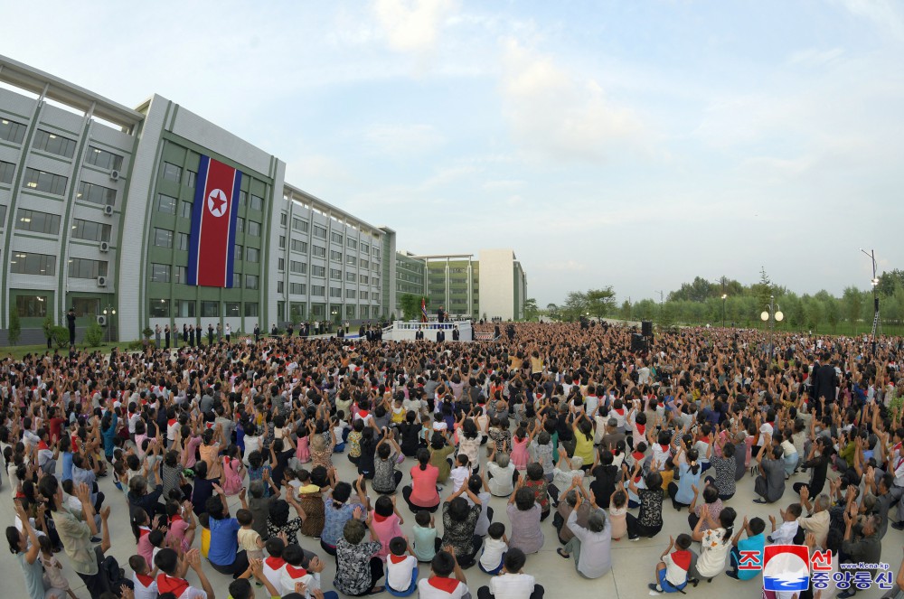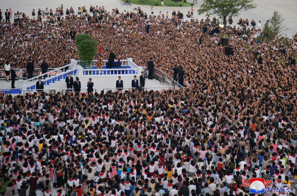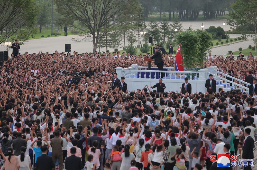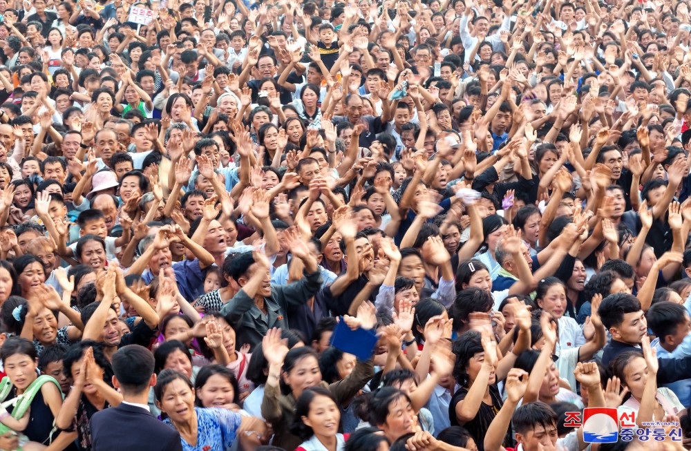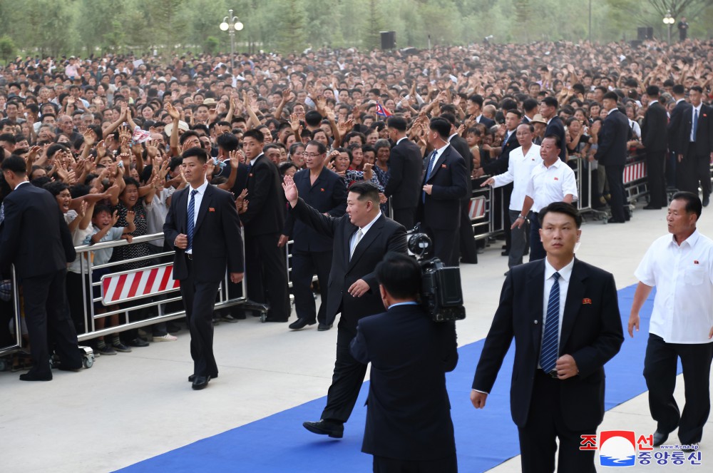 Generální tajemník Korejské strany práce a předseda pro státní záležitosti Korejské lidově demokratické republiky vážený soudruh Kim Čong Un se osobně vydal na místo jejich noclehu a setkal se s obyvateli postiženými povodněmi z různých oblastí.