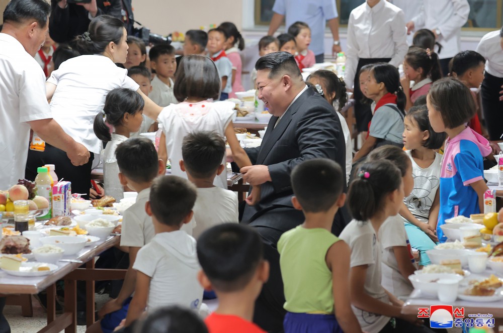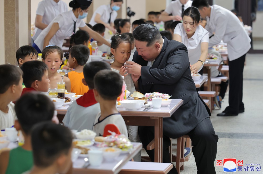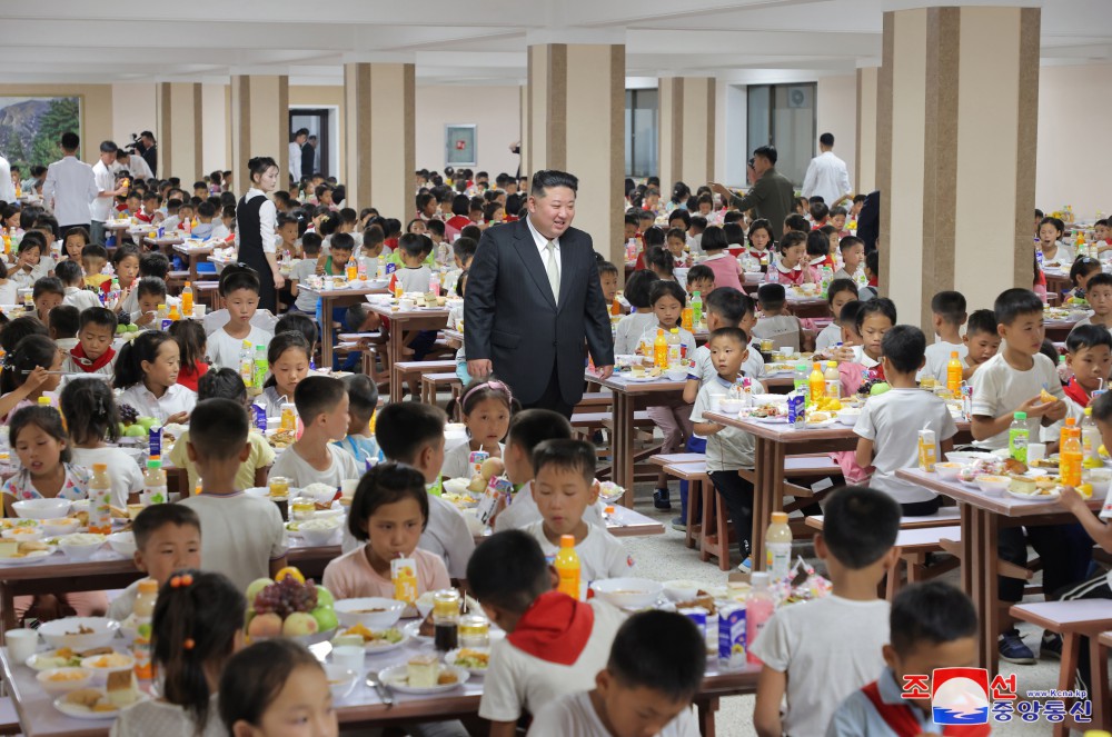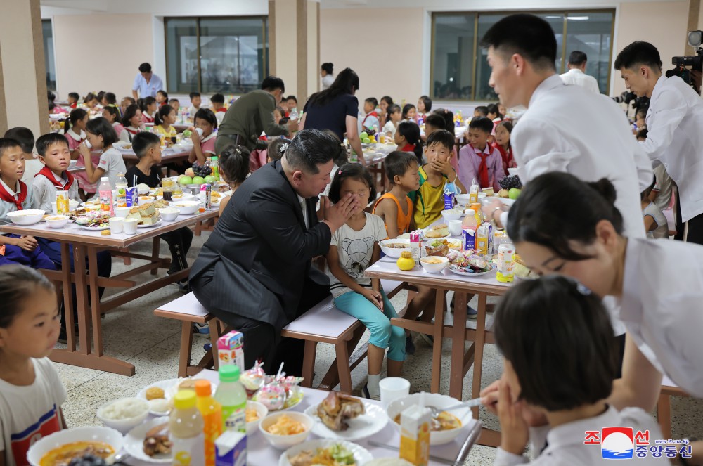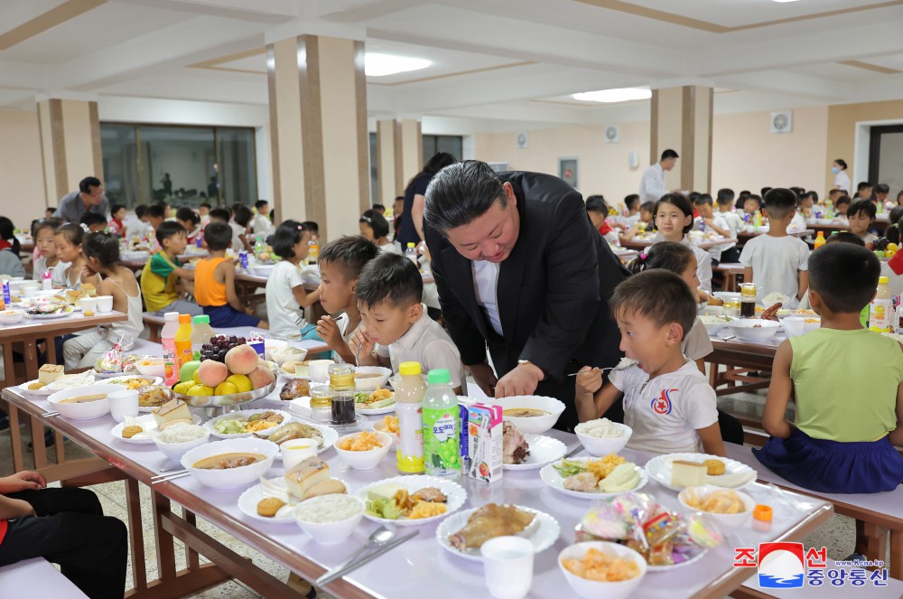 Soudruh Kim Čong Un navštívil dětskou jídelnu.