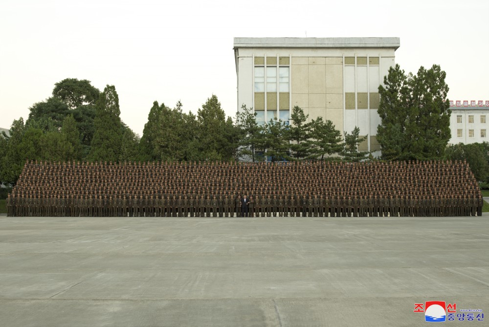Vážený soudruh Kim Čong Un se v tento den na památku nechal vyfotografovat s učiteli, zaměstnanci a kadety akademie.