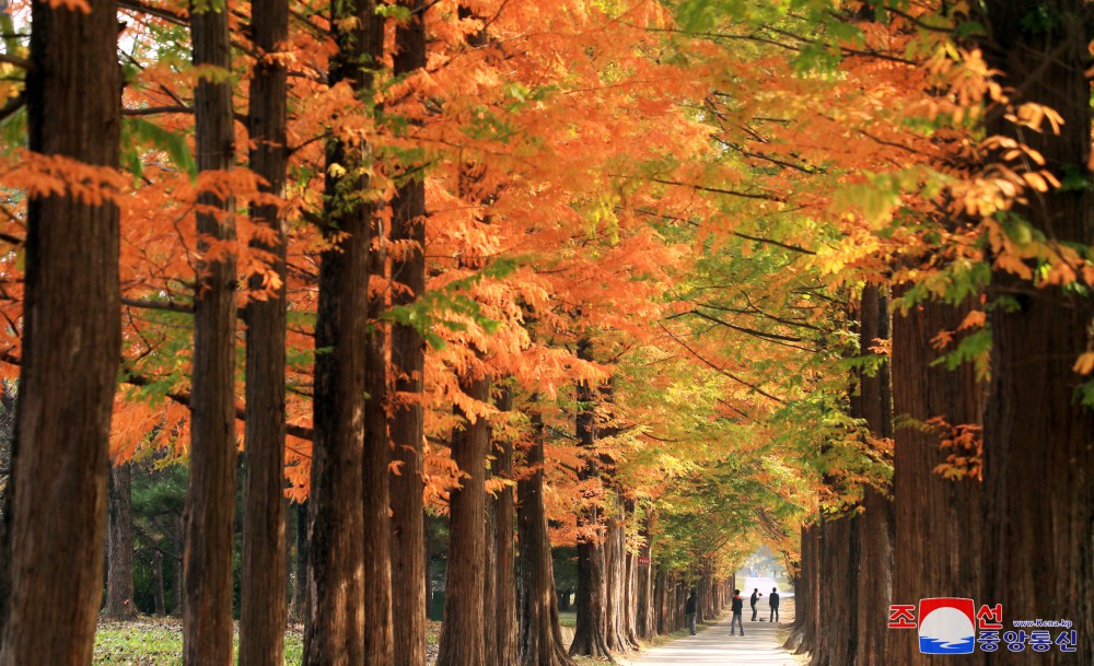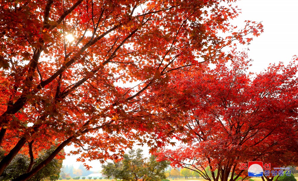 Pchjongjang 3. listopadu čučche 113 (2024) /KCNA/ – Barevné podzimní listí v Ústřední botanické zahradě přispívá k náladě podzimu.