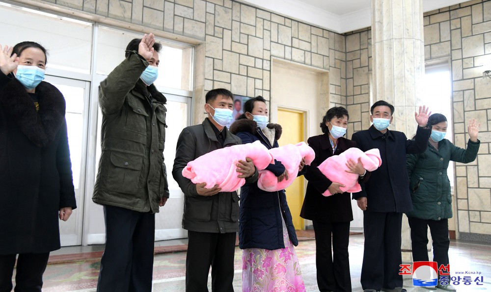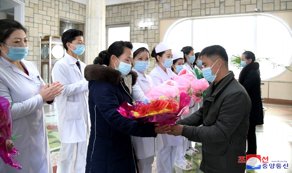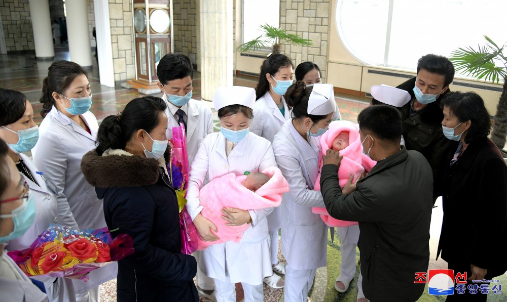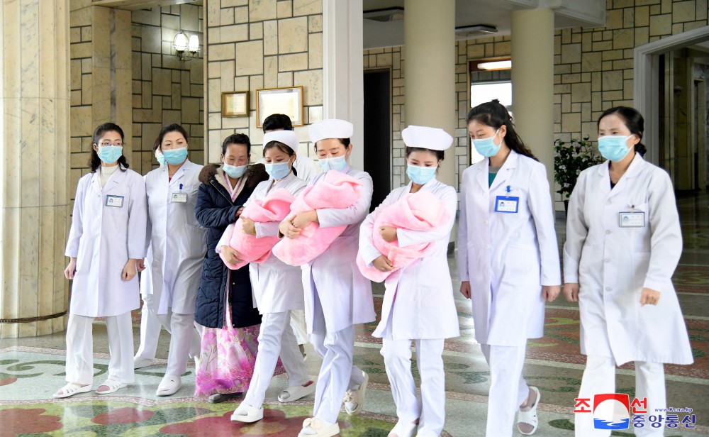 Matka trojčat Mun Hjang Ok, žijící ve vesnici Sadong v okrese Pchangjo v provincii Kangwon, odešla v červnu do porodnice ihned po diagnóze trojčat a dostalo se jí té nejvyšší lékařské péče v hluboké lásce mateřské strany a péči socialistického zdravotnického systému.