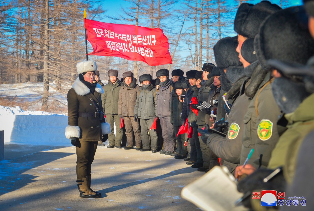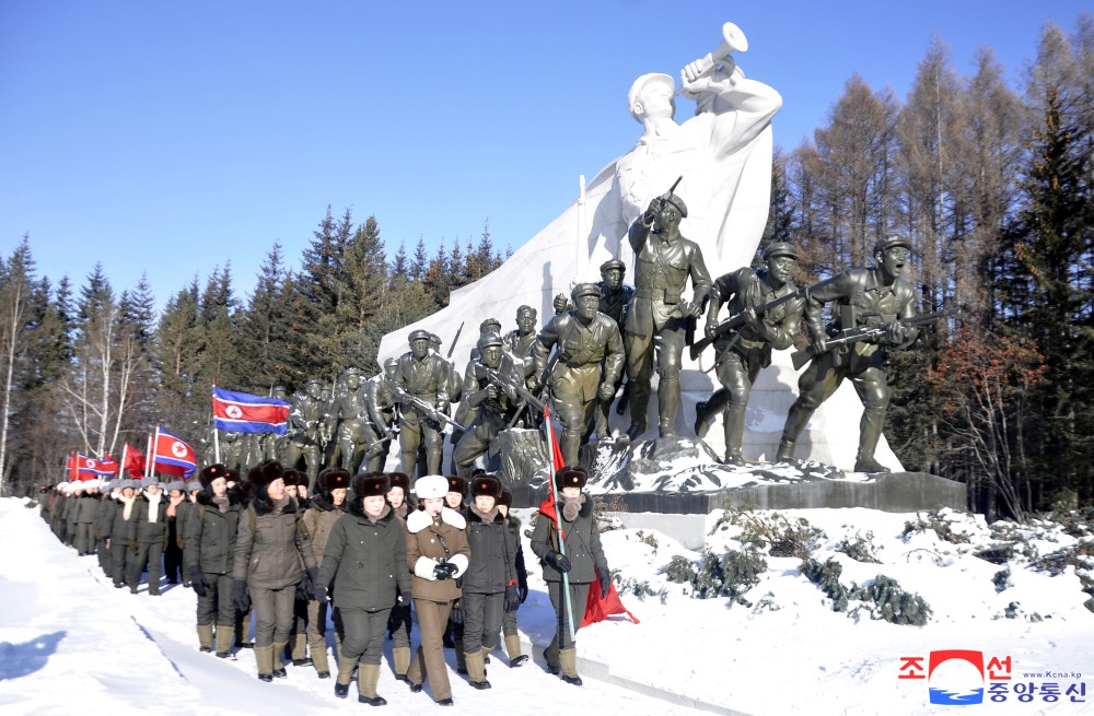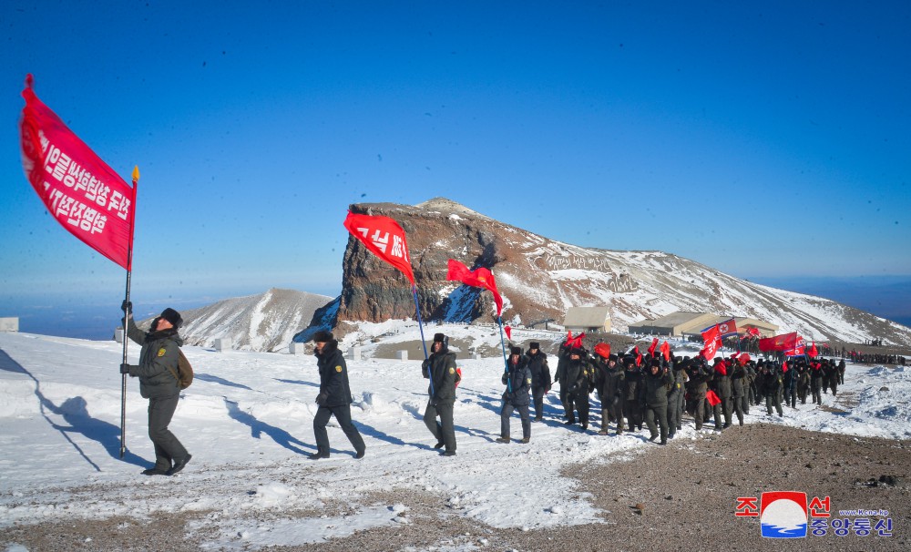 Pchjongjang 7. prosince čučche 113 (2024) /KCNA/ – Vedoucí funkcionářky Svazu žen z celé země zahájily pochod do míst revoluční bojové slávy v oblasti pohoří Pektusan.