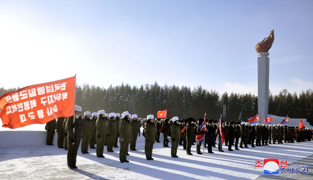 6. prosince se na náměstí před bronzovou sochou velkého vůdce soudruha Kim Ir Sena v komplexu Samdžijonského velkého památníku konalo slavnostní zahájení pochodu.