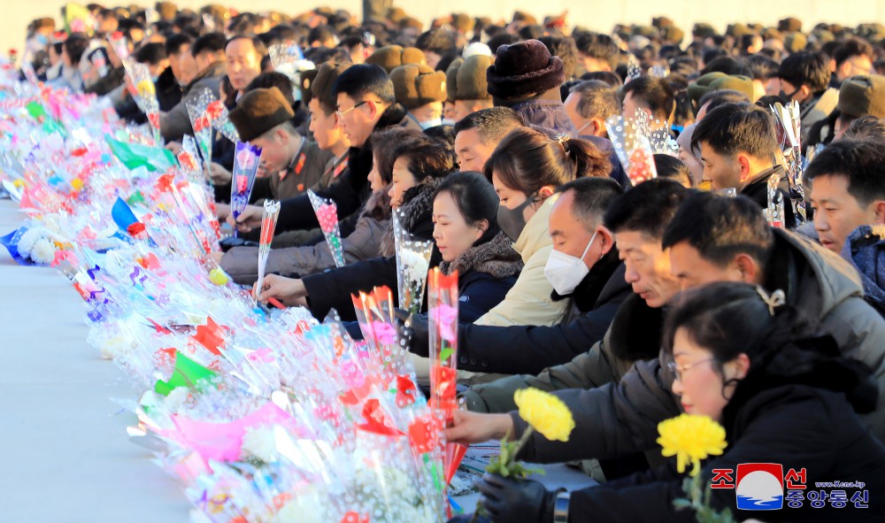 Pchjongjang 18. prosince čučche 113 (2024) /KCNA/ – U příležitosti 13. výročí úmrtí velkého vůdce soudruha Kim Čong Ila s pocity nejhlubší úcty vzdal lid celé země čest památce neskonalého velikána, jedinečného vlastence a velikého světce revoluce.