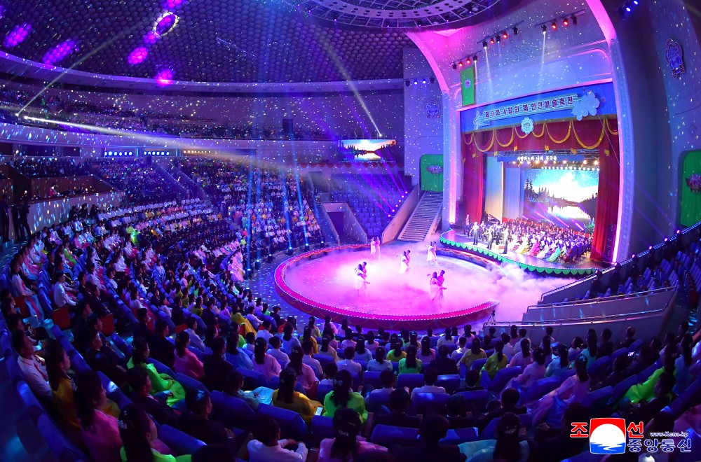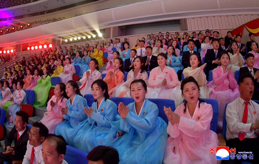 Představení sledovali členové organizačního výboru festivalu, pracující města Pchjongjangu a mládež.