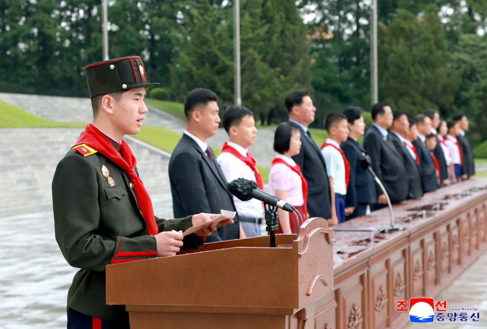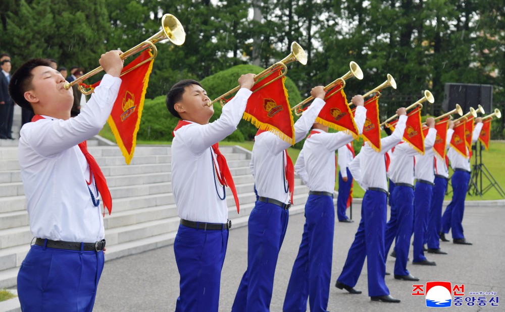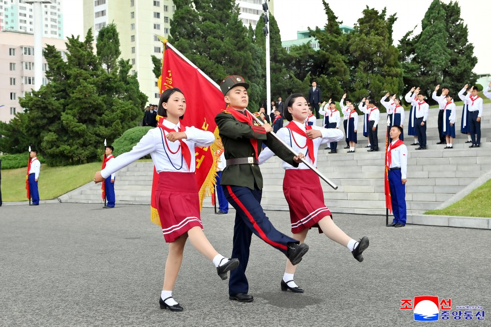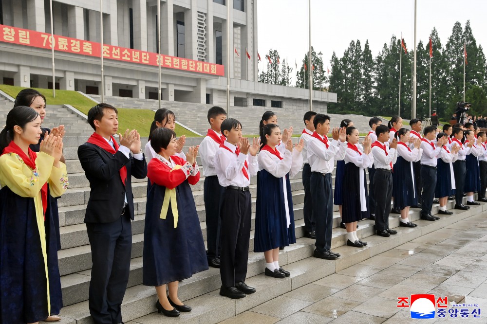 Přítomni byli účastníci slavnostních akcí na počest 79. výročí založení Korejského svazu dětí, žáci Revoluční školy Mangjongde a Revoluční školy Kang Pan Sok, školáci z Pchjongjangu a členové delegace korejských školáků v Japonsku.