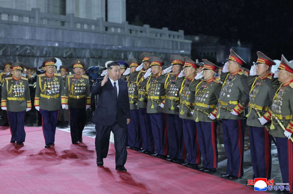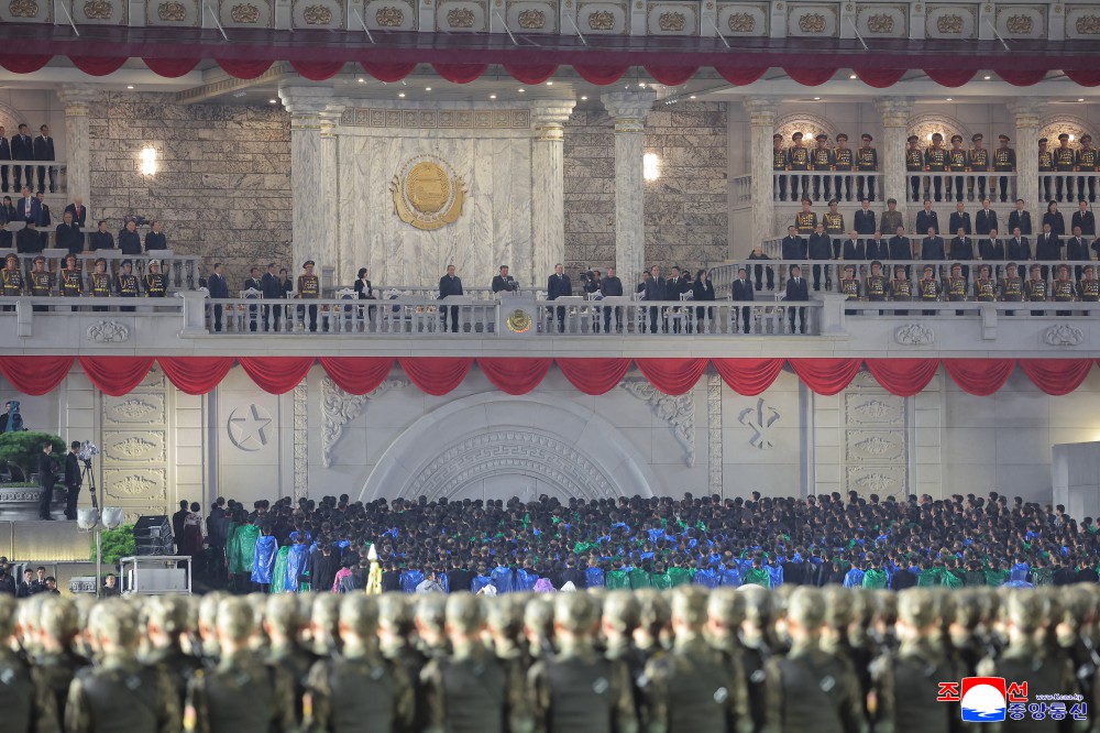 Čestná stráž KĽA vykonala ceremóniu na privítanie hlavy štátu. Kim Čong Un, generálny tajomník KSP a predseda Štátnych záležitostí KĽDR, vykonal prehliadku čestnej stráže a zástav zložených jednotiek všetkých stupňov. V sprievode straníckych a vládnych predstaviteľov rôznych krajín vystúpil na tribúnu. Námestie otriasli mohutné výkriky „hurá!“ a nočnú októbrovú oblohu rozžiarili ohňostroje.