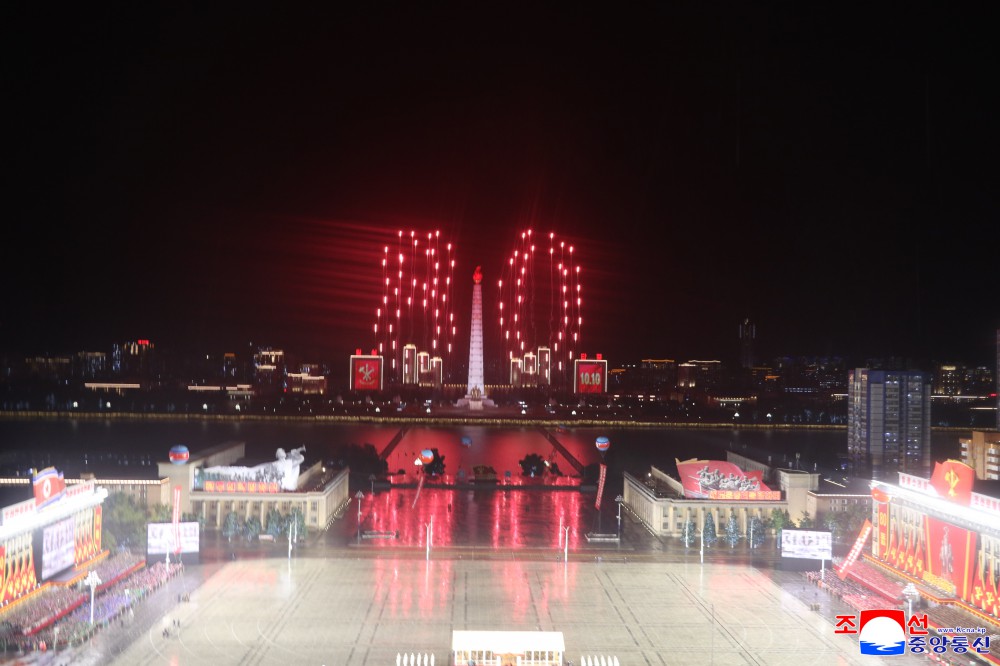 Po skončení prehliadky opäť zazneli búrkové pokriky „hurá!“ a októbrovú oblohu zaplavili nádherné ohňostroje. Kim Čong Un srdečne opätoval nadšené ovácie.