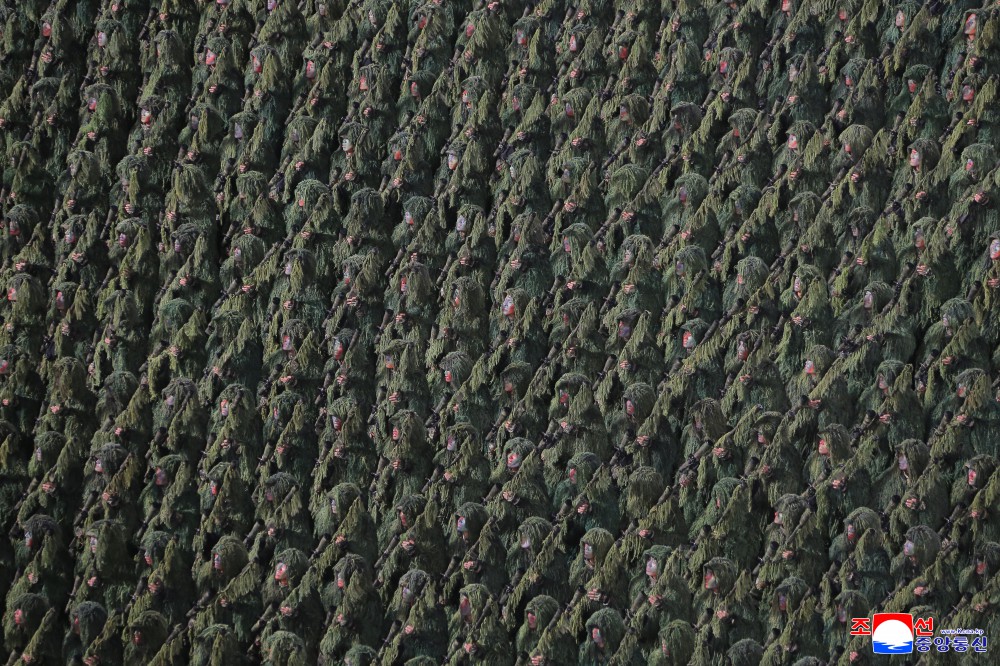 Na priľahlých triedach sa zoradili pešie kolóny všetkých druhov vojsk Kórejskej ľudovej armády (KĽA) a kolóny ultramoderných prostriedkov. Do priestoru vstúpil orchester Štátneho záslužného zboru poverený hudobným sprievodom prehliadky.