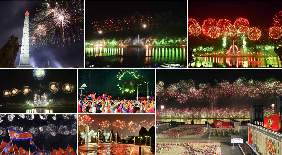 V sobotu v Pchjongjangu bol odpálený ohňostroj pri príležitosti 75. výročia založenia Kórejskej strany práce. Rakety rôznych farieb boli vystrelené na mieste medzi mostami Okrju a Tedonggang s Vežou čučche uprostred. Pod farebne ožiarenou oblohou na námestí Kim Ir Sena bolo more tanečníkov. Nepretržitý ohňostorj nádherne zdobil oblohu. Široko-ďaleko znela pieseň „Narodeniny matky“. Číst dál