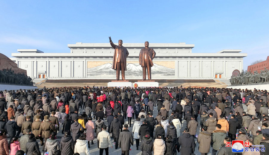 Na nádvorí paláca sa masy poklonili pred portrétmi slnečne usmievavých veľkých vodcov. Funkcionári a pracujúci ľudia položili kvetinové koše, kytice a kvety a poklonili sa pred sochami veľkých vodcov na vrchu Mansu a vo všetkých ostatných častiach krajiny a mozaikami zobrazujúcimi veľkých vodcov. Číst dál