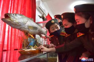 Pchjongjang 22. února čučche 112 (2023) (KCNA) – Funkcionářky a členky svazu žen provedly 21. února studijní pochod na revoluční bojiště Madusan.