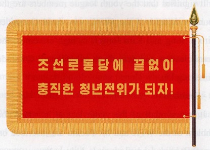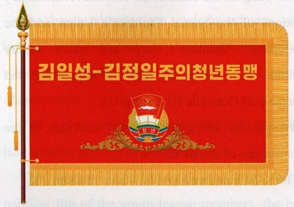 Predná strana vlajky Kimirsensko-Kimčongilského zväzu mládeže