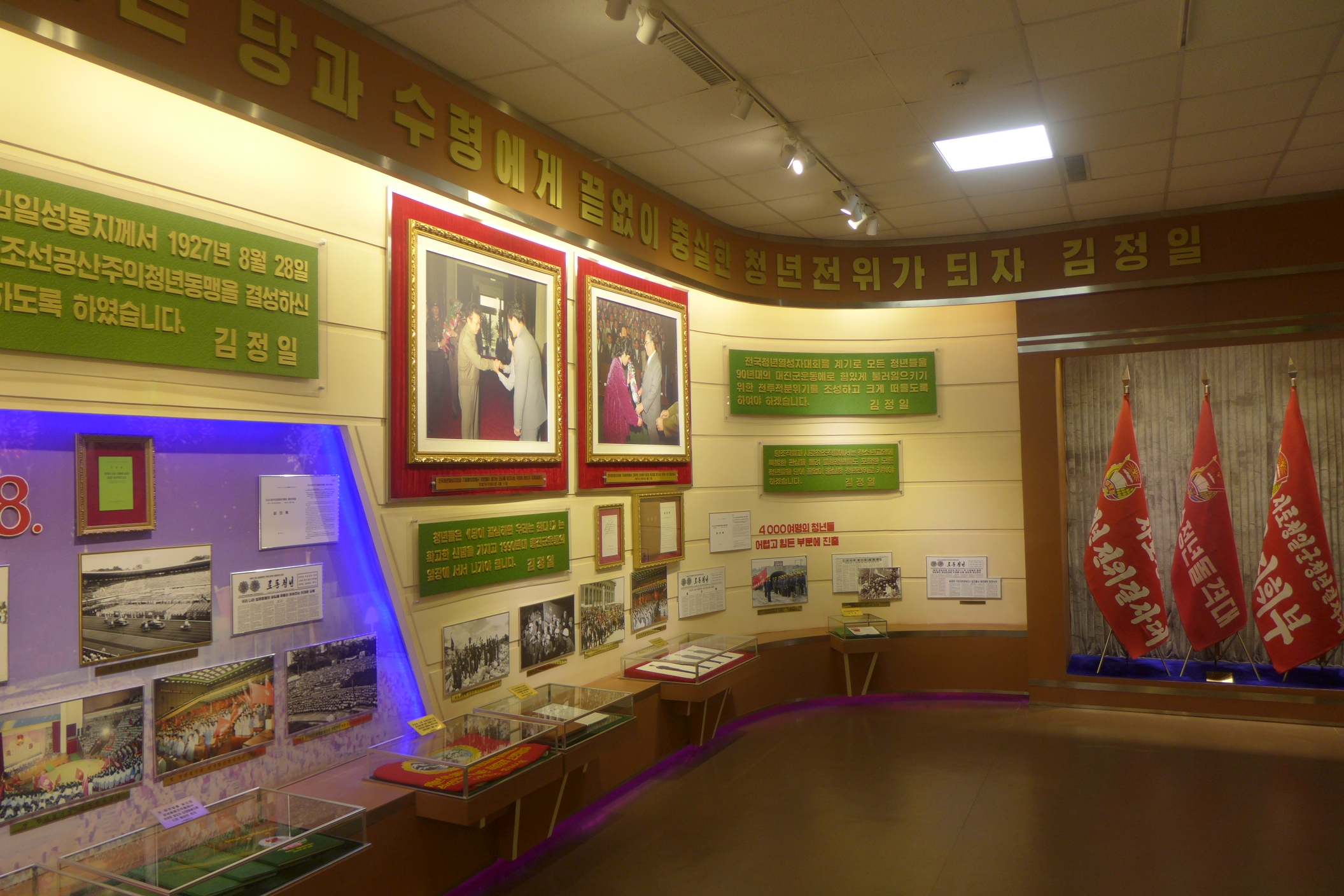Múzeum zobrazuje vývoj mládežníckeho revolučného hnutia v Kórei od detstva Kim Ir Sena, keď založil Zväz proti imperializmu. V tom čase mal budúci prezident KĽDR iba 14 rokov. Ako sme mali možnosť vidieť, súdruh Kim Ir Sen viedol revolučné aktivity kórejskej mládeže takmer dlhých sedem desaťročí.  Jednotlivé časti múzea zachytávajú aktivity súdruha Kim Ir Sena v mládežníckom hnutí počas partizánskych bojov v protijaponskom odboji, počas americko-kórejskej vojny a takisto už ako prezidenta Kórejskej ľudovodemokratickej republiky.