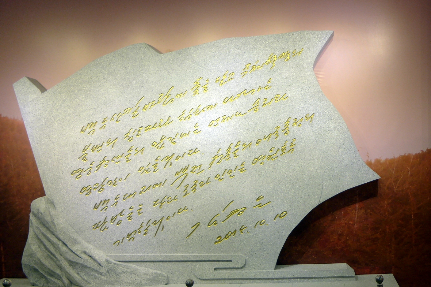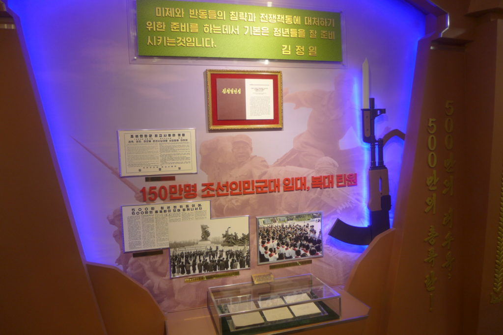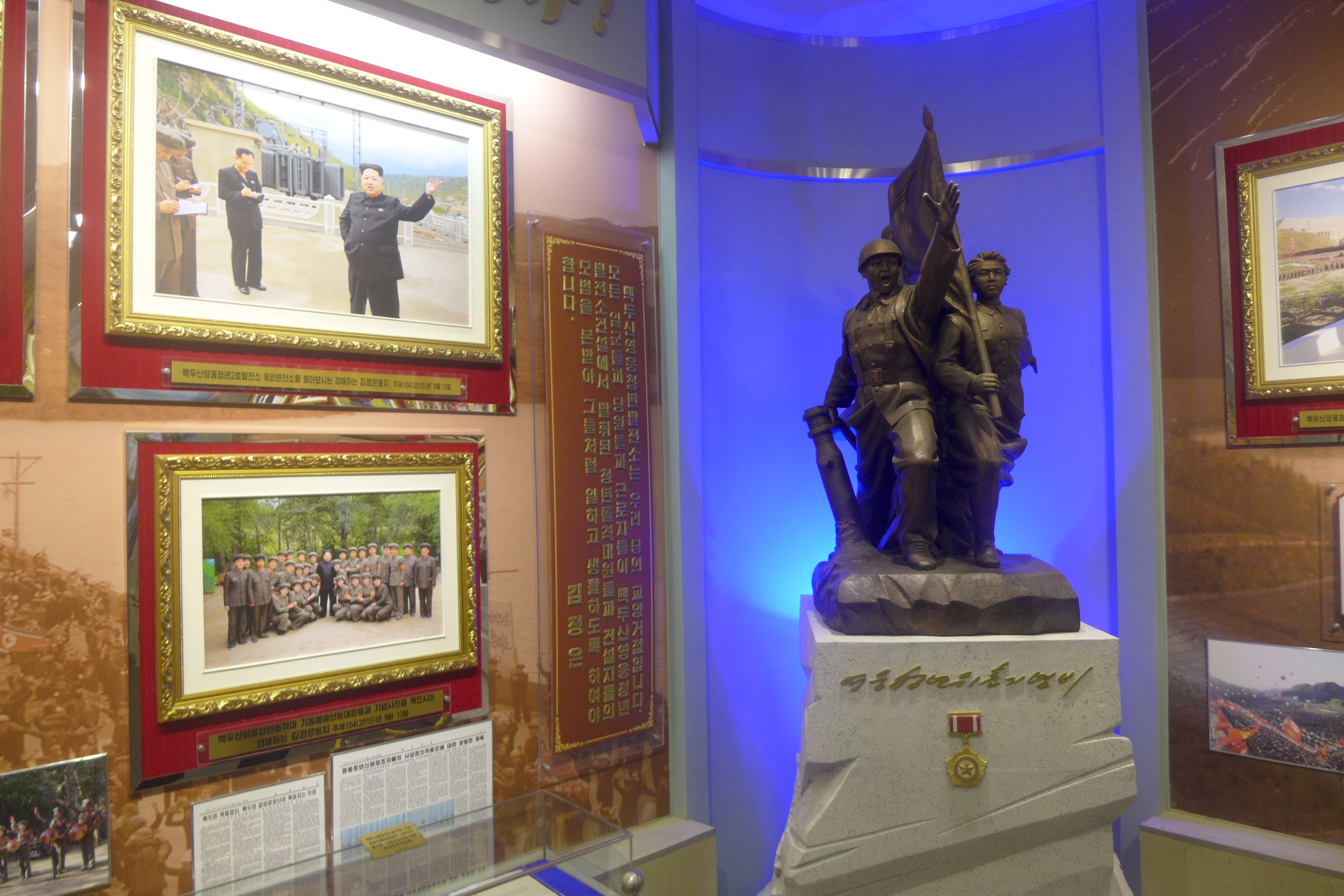 Posledná časť expozície sa venuje aktivitám maršala Kim Čong Una.