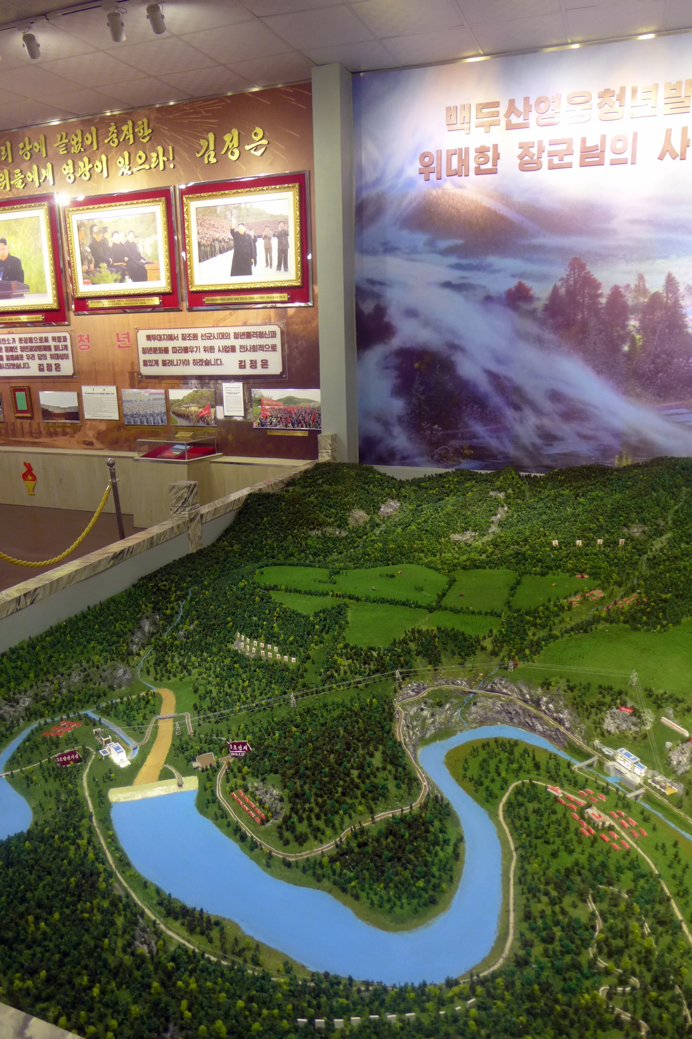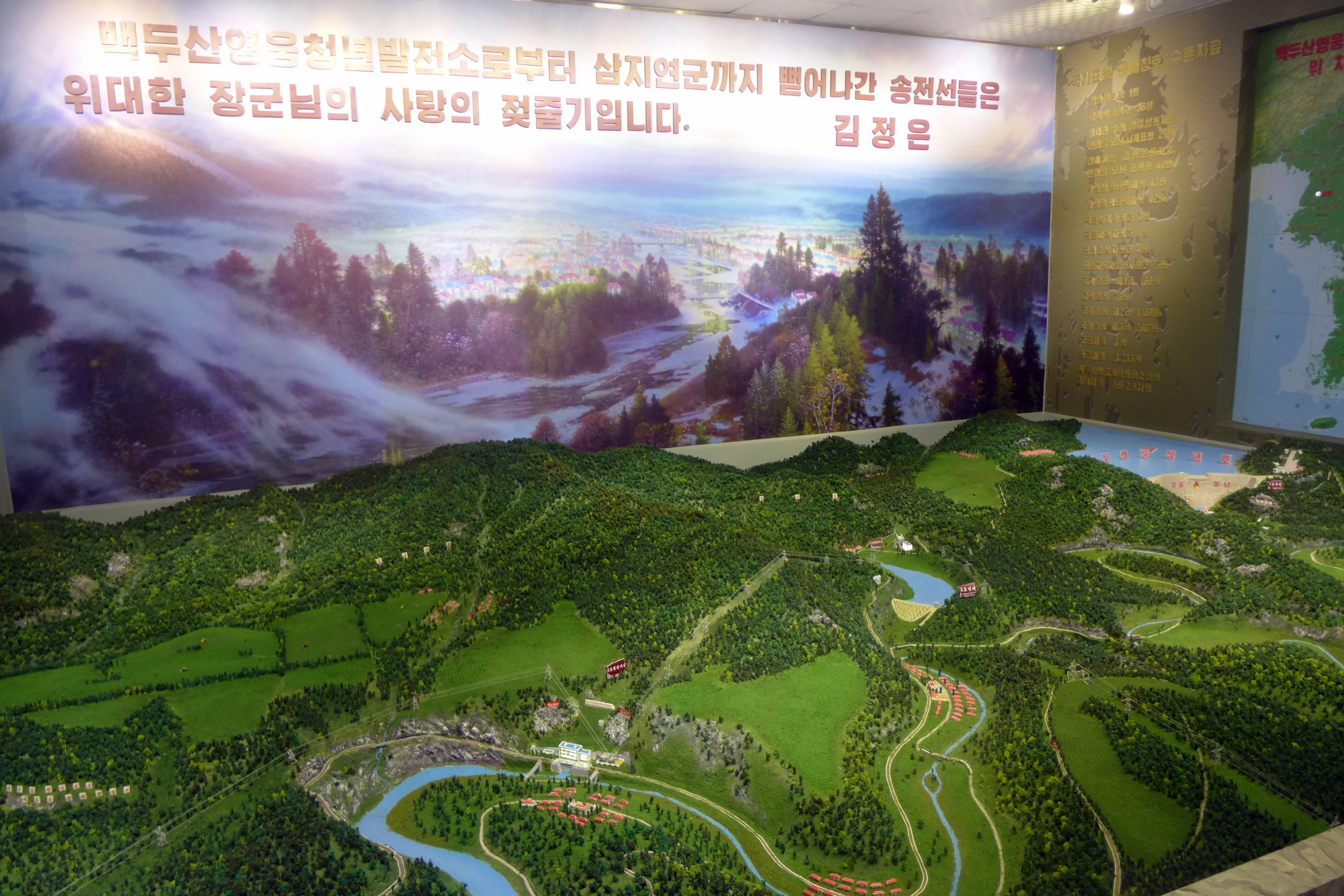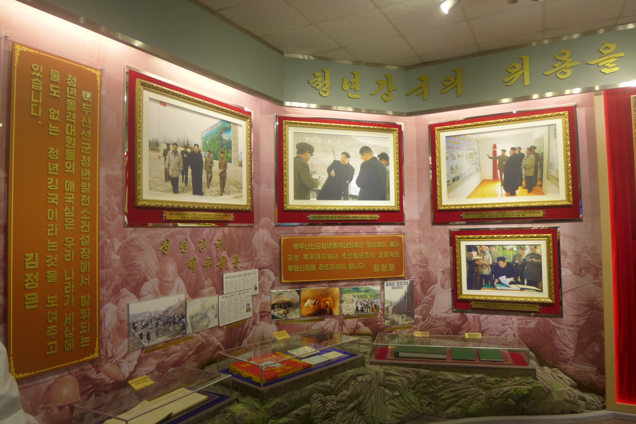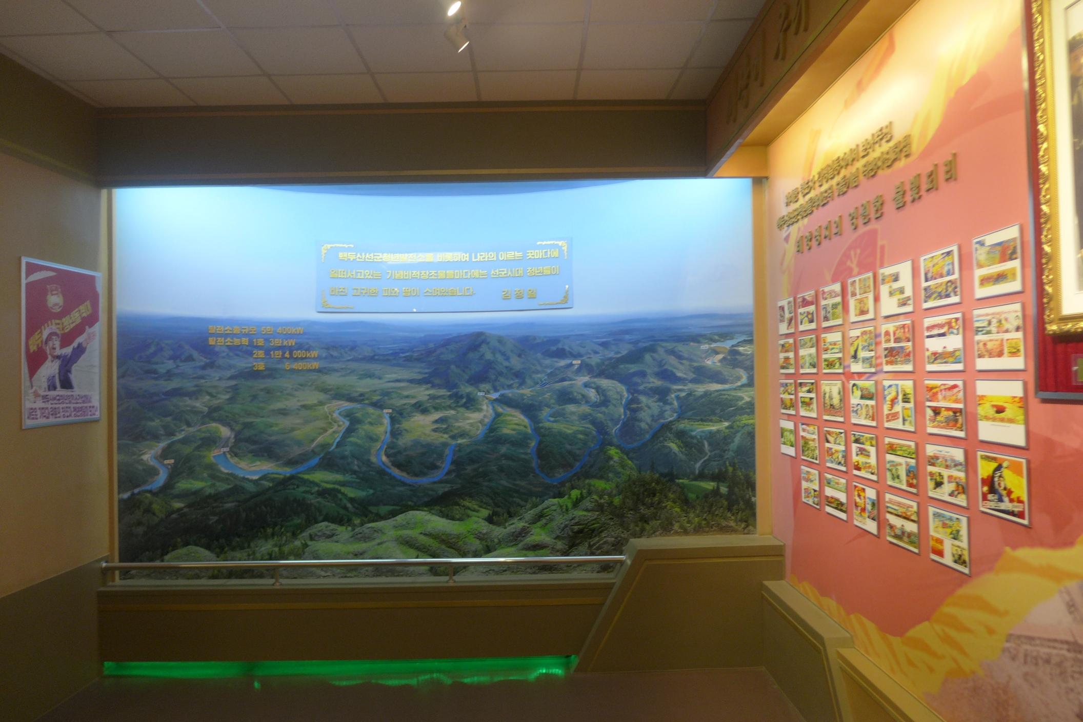 Návštevníci majú možnosť vidieť napríklad diorámu výstavby Pektusanskej vodnej elektrárne, ktorá stála dlhých 10 rokov, až kým sa do nej neopreli mladí budovatelia z Kimirsensko-Kimčongilského zväzu mládeže a stavba bola dokončená za niekoľko mesiacov, teda môžeme tu hovoriť o určitom zázraku. Počas výstavby bol vážený súdruh Kim Čong Un dvakrát osobne skontrolovať priebeh prác, podal pokyny k výstavbe a vzhľadom na to, že hora Pektu sa nachádza v nehostinnej oblasti, kde je chladno a podmienky na prácu sú značne sťažené, dbal maršal Kim Čong Un na to, aby boli pracujúcim mládežníkom zaistené čo najlepšie podmienky.