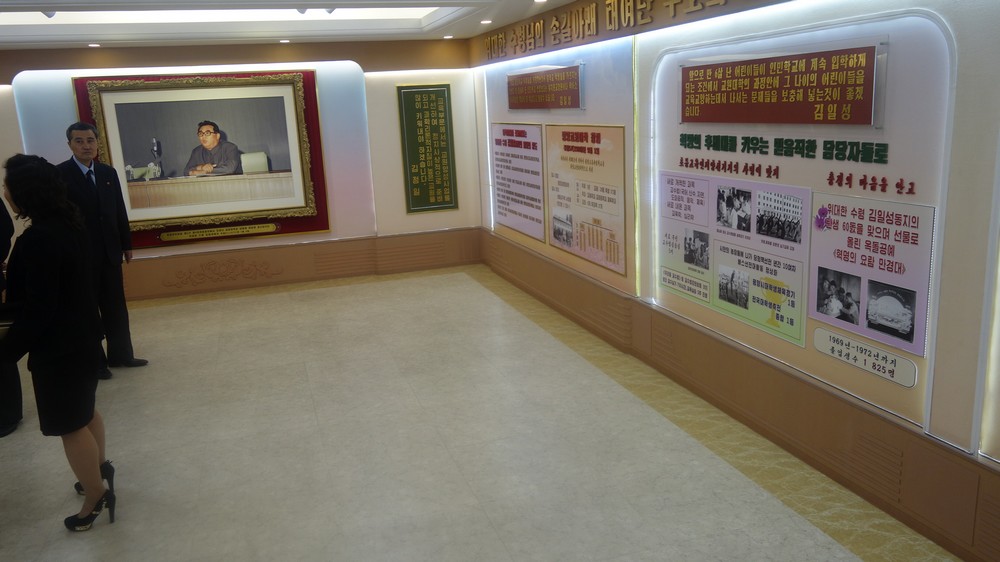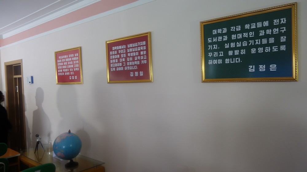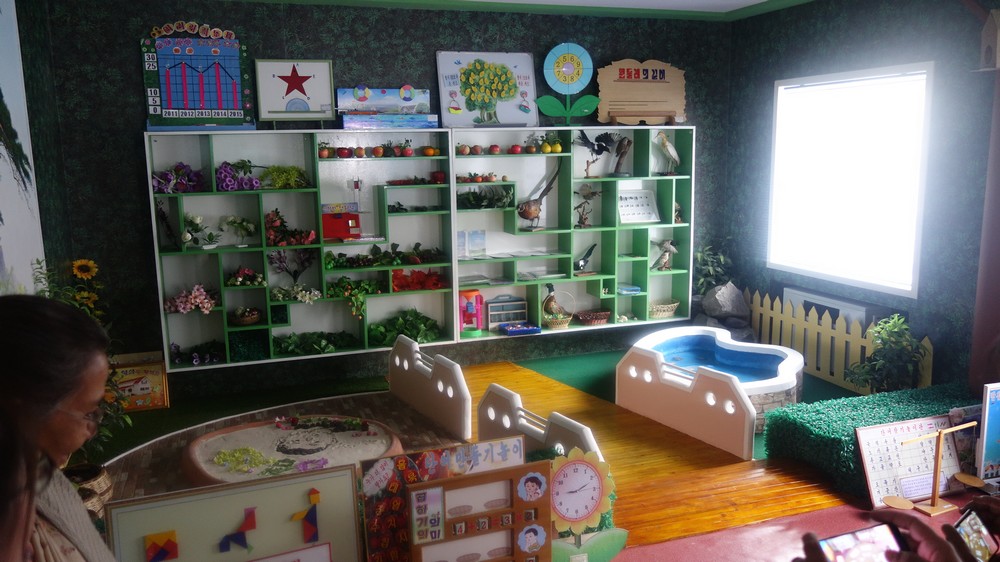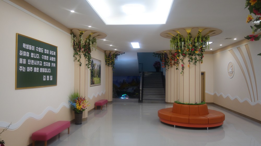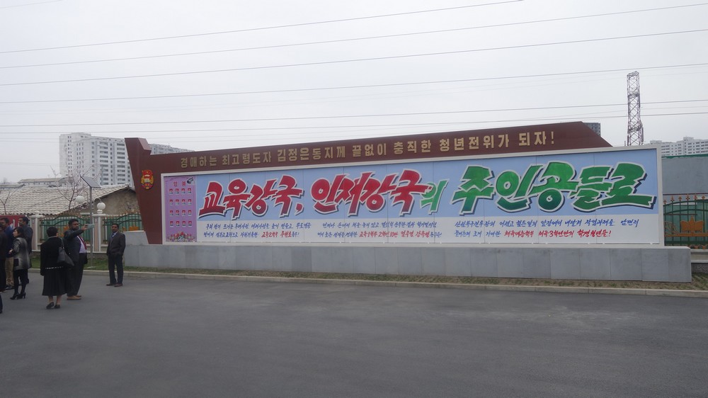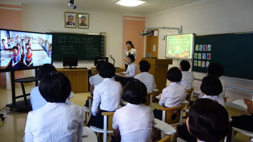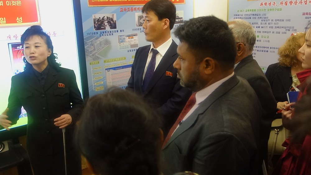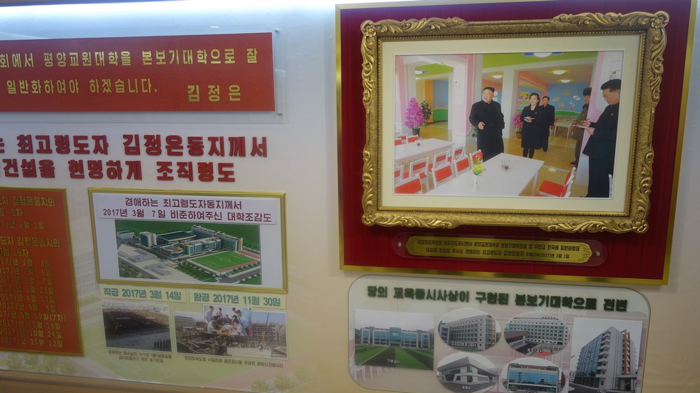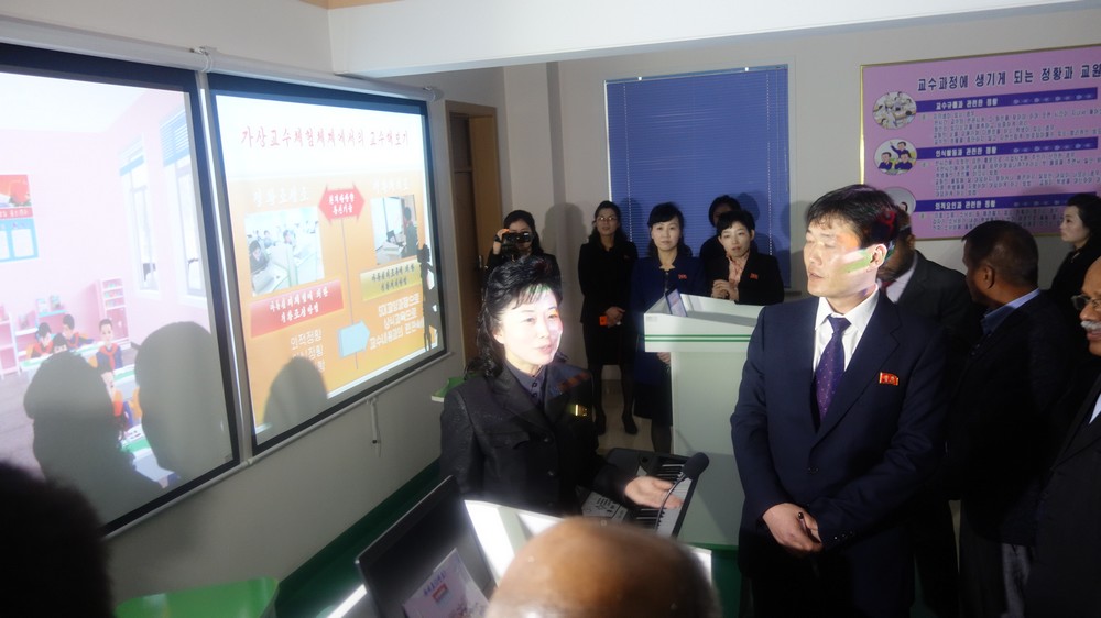 Zaujal nás zejména počítač k simulaci výuky v korejštině i v angličtině. Animovaní žáci, v souladu se skutečností KLDR v pionýrských uniformách, vzorně odpovídají na pokyny a otázky učitelky v korejštině i angličtině. (V korejštině se nepoužívá název „pionýr“, ale „Svaz dětí“ – Sonjondan.) Stejně jako dospělí v celé společnosti, také žáci jsou oslovováni „soudruzi“. Všechny učebny i chodby institutu jsou vyzdobeny působivými agitačními nástěnkami a citáty velkých vůdců. Školství v KLDR je zcela bezplatné a žákům i studentům jsou zdarma poskytovány i uniformy.