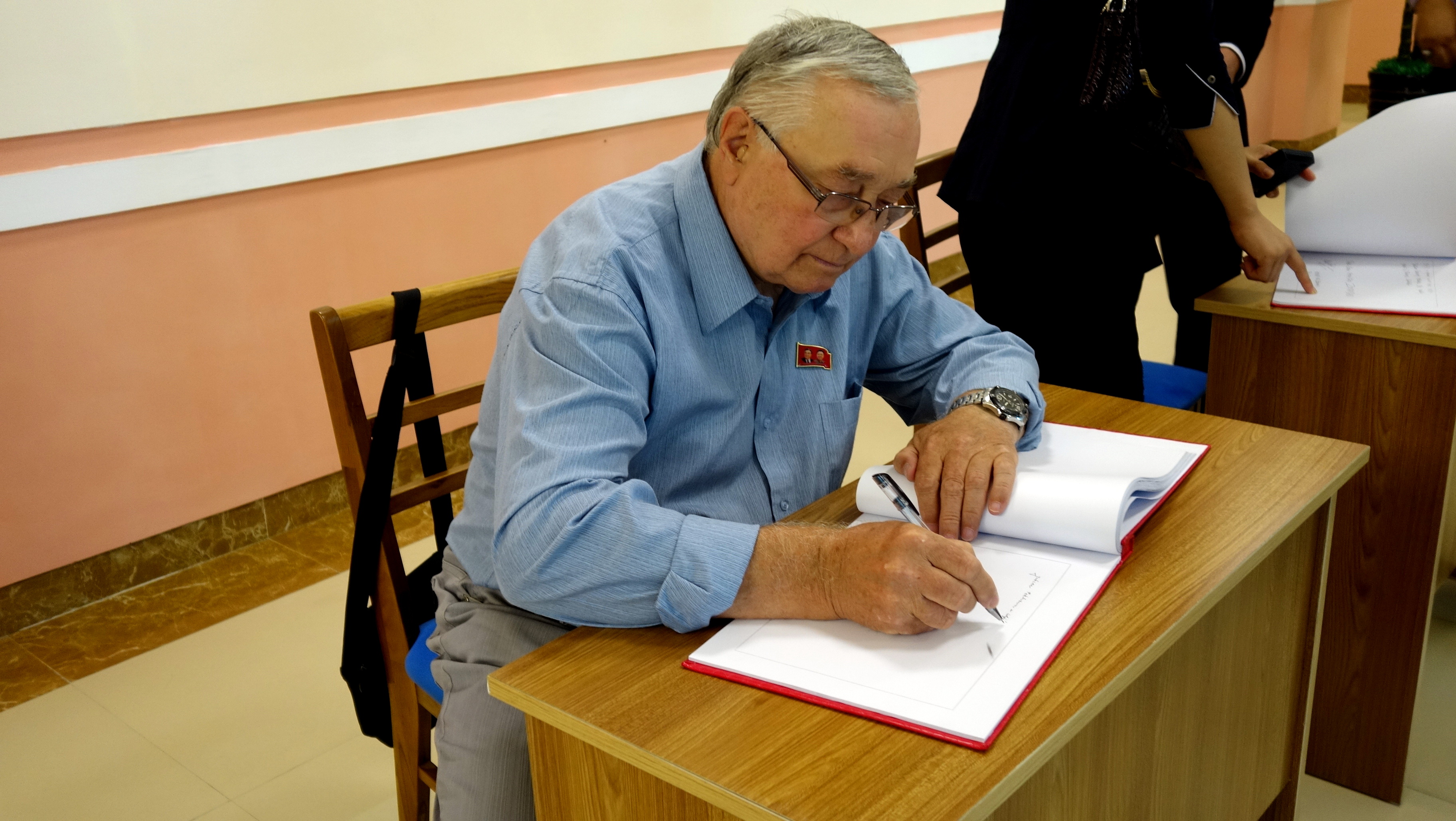 Delegácia napísala krátky odkaz do návštevnej knihy, v ktorom popriala ľudu a obzvlášť deťom KĽDR zdravie, mier a šťastný život v socialistickej krajine.