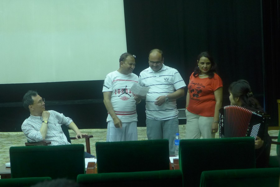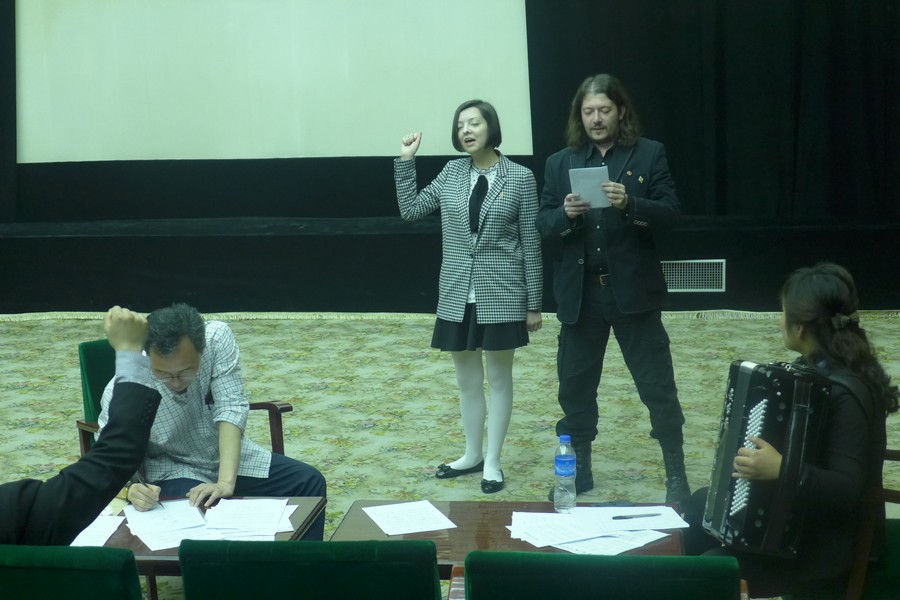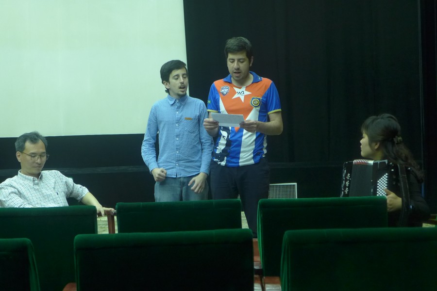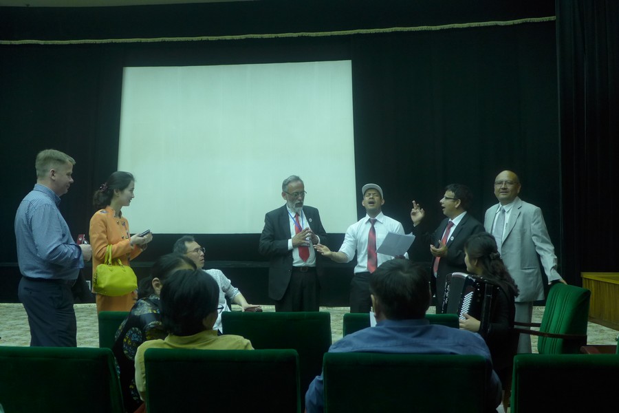 Nácvik zpěvu zahraničních delegací v hotelu Korjó